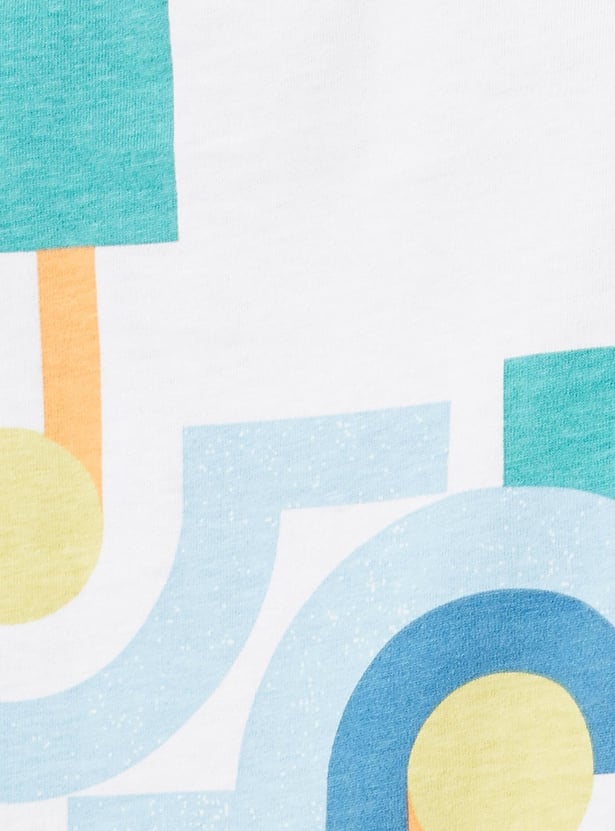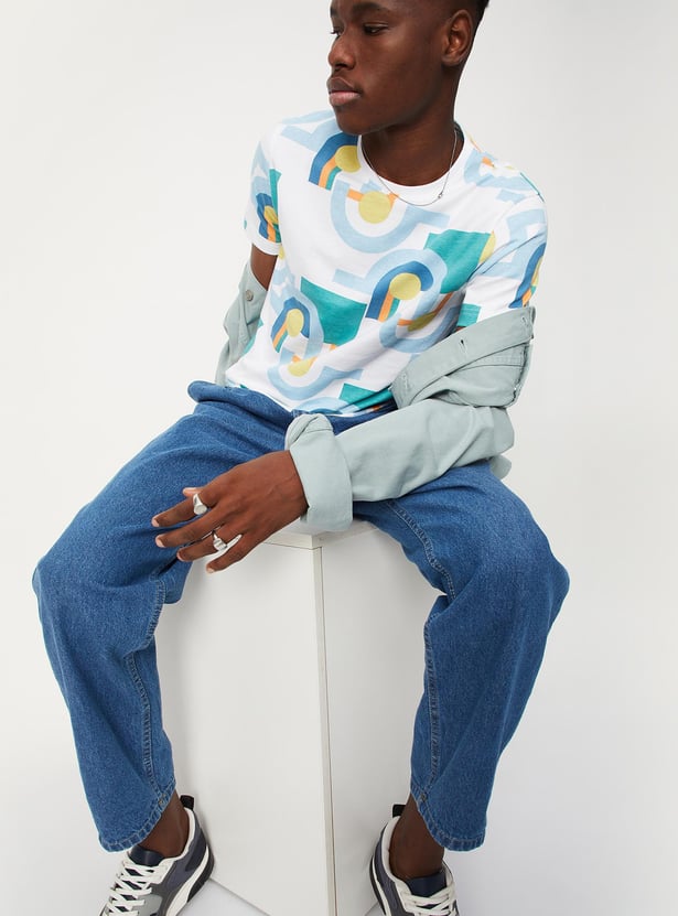 Time for a makeover of your style quotient with this geometric printed T-shirt which has a crew neck and half sleeves. Team it up with a pair of jeans and lace-up shoes to complete the look.