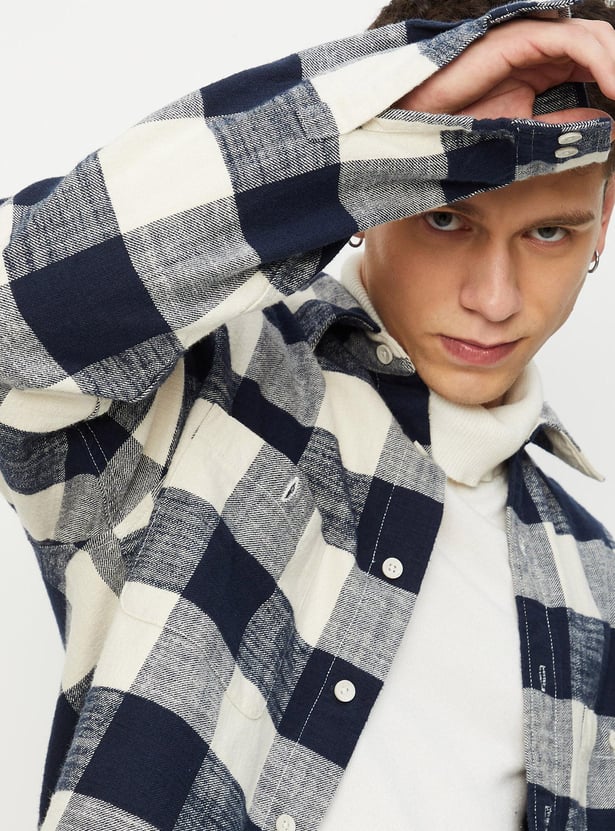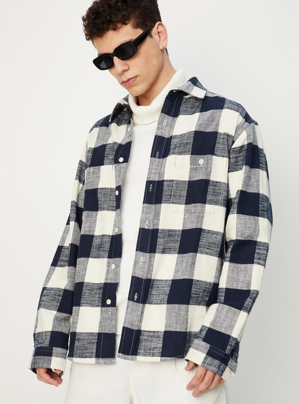 Men Oversized Checked Shirt
