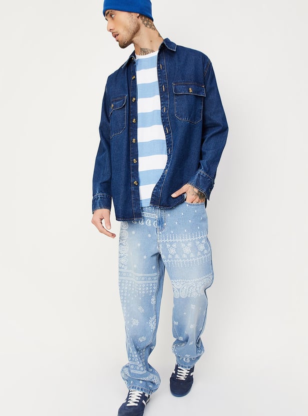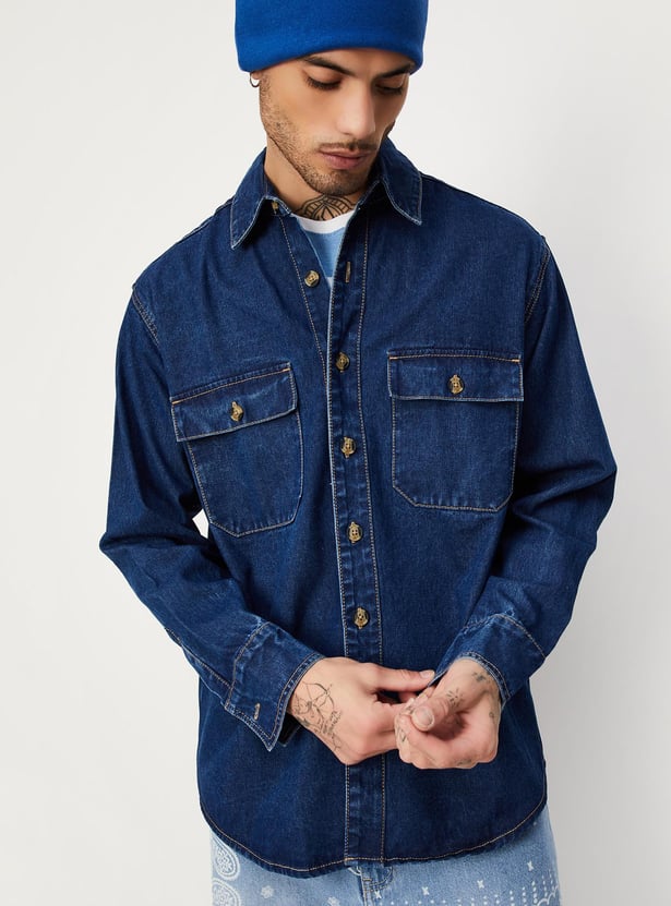 Look casual and stylish season after season with this denim shirt. It has a washed design with an oversized profile. This shirt has a spread collar, full sleeves, buttoned cuffs, double-flap buttoned pockets, and a curved hem. layer this shirt over a tee and pair it with jeans and sneakers to ace the look.