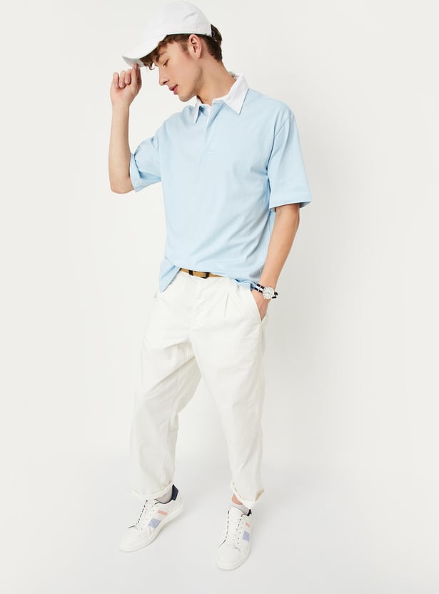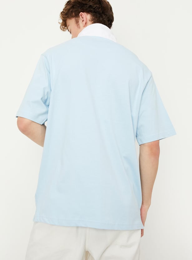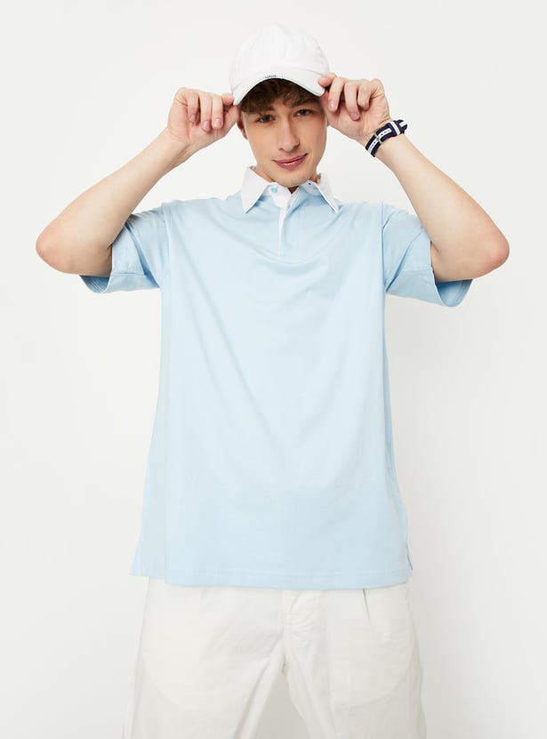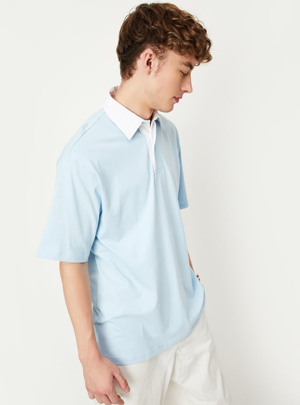 This oversized solid t-shirt with short sleeves, a polo collar, and a button placket adds a fashionable flair to your casual outfit. Wear it with jeans and sneakers for a trendy look.