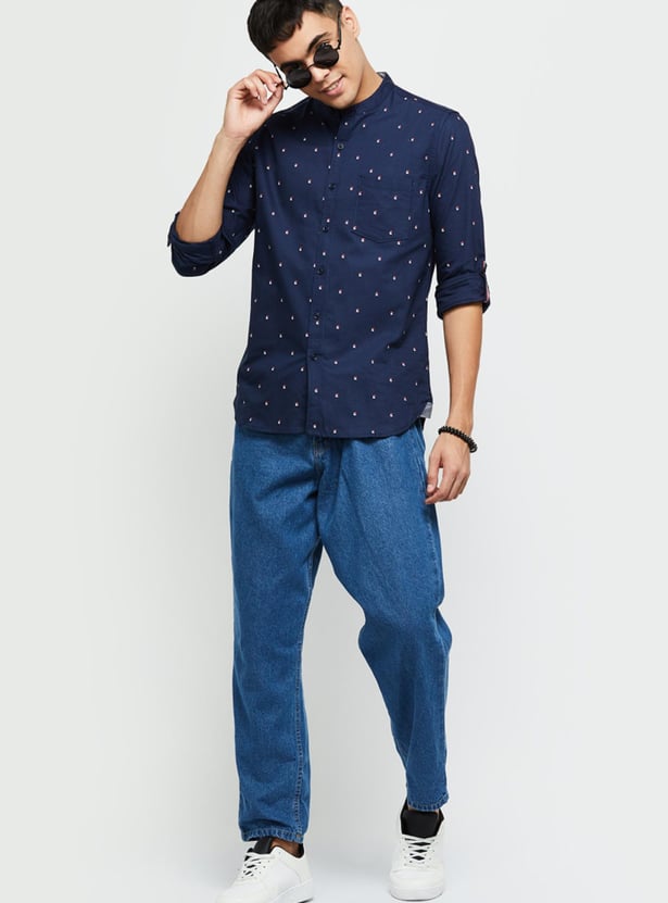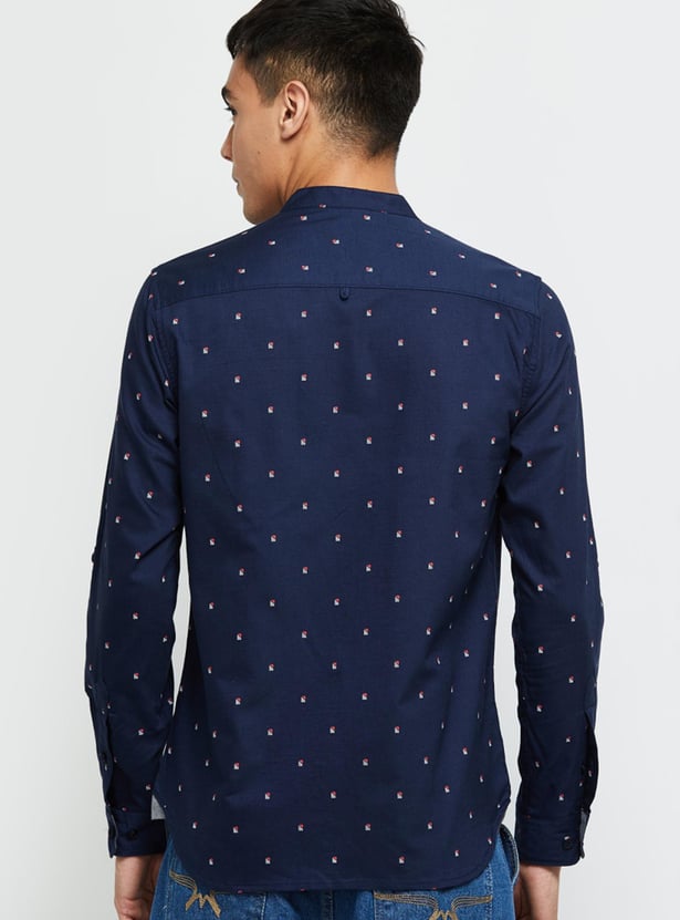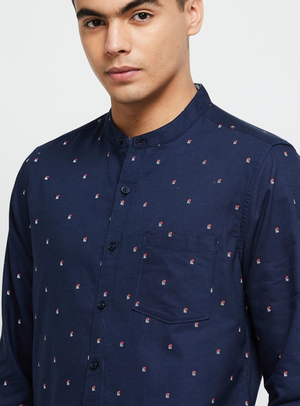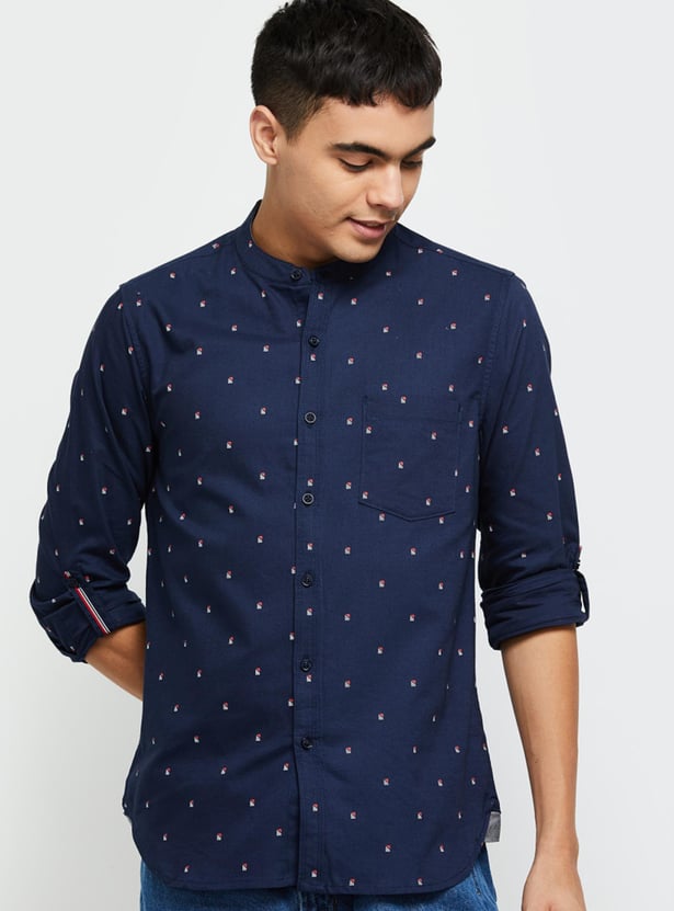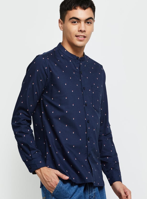 It's time to make a statement with your updated casual wardrobe. Add this printed casual shirt that has a band collar and full sleeves to your collection. Team it up with a pair of jeans and lace-up shoes to complete the look.
