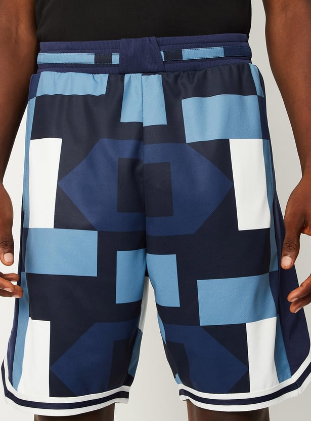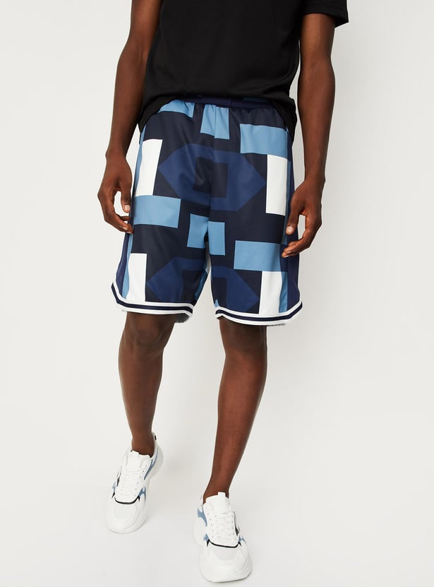 Stay comfy on the field in this pair of shorts. It features geometric prints, an elasticated waist, and a curvy hem. Team up this pair of shorts with a tee and sneakers to look game ready.