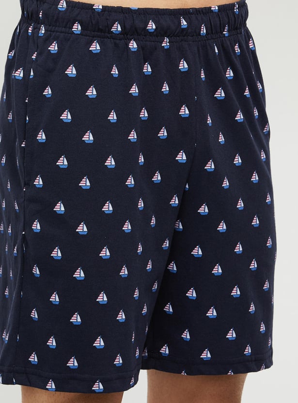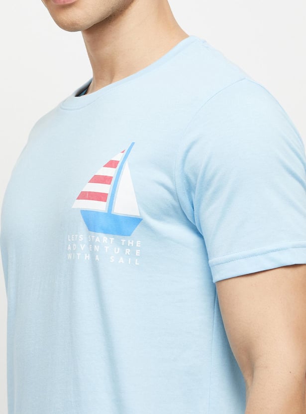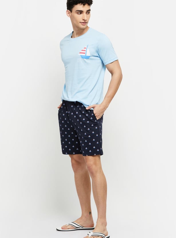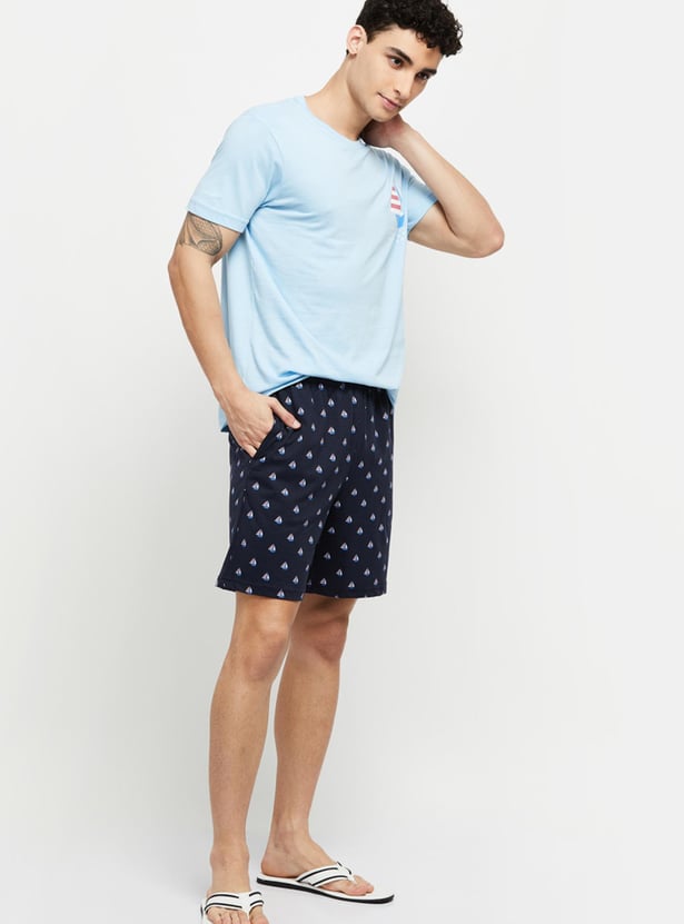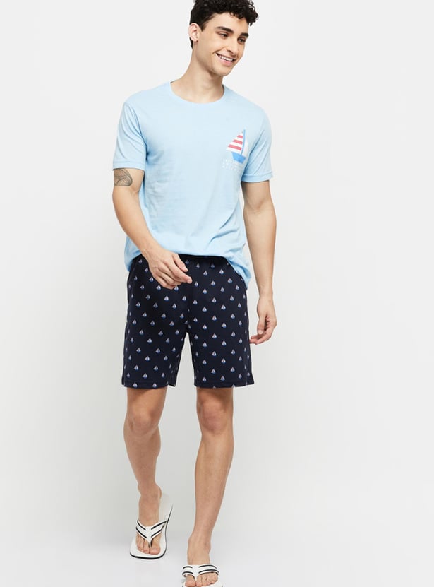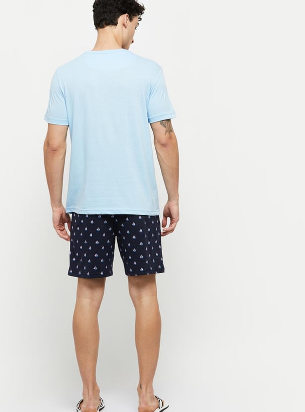 Men Printed Crew Neck T-Shirt With Elasticated Shorts