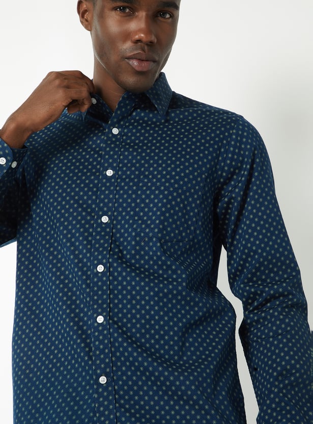 Refined yet versatile, this printed regular fit shirt is designed to elevate everyday dressing. Featuring a spread collar and button placket, it offers a polished silhouette, while the full sleeves with button cuffs add a classic finishing touch.