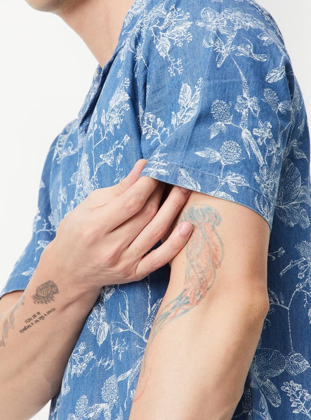 Elevate your style game with this casual shirt. This shirt features a regular fit profile with a resort collar, half sleeves, and a straight hemline. The printed pattern all over updates the style. To master your style effortlessly, combine this shirt with tailored trousers and a pair of sleek loafers.