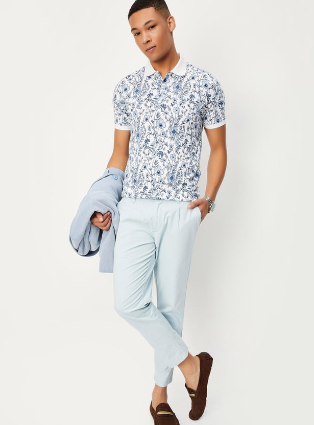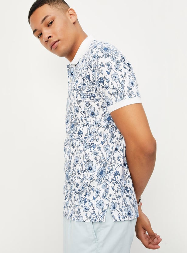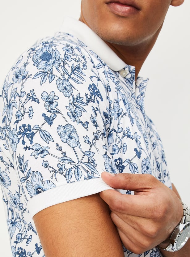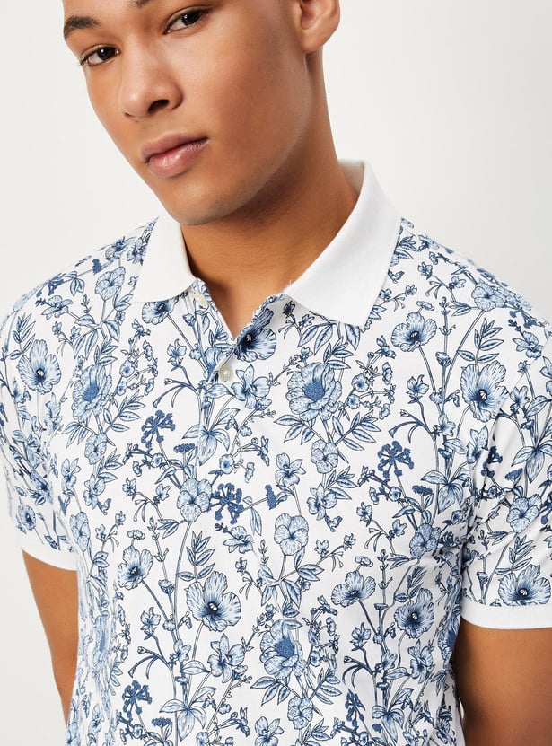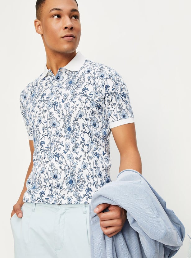 Infuse a dash of fashion into your casual ensemble with this printed polo t-shirt. Boasting short sleeves, a stylish polo collar, and a button placket, it brings a fashionable edge to your look. Complete the trendy appearance by pairing it with jeans and sneakers.
