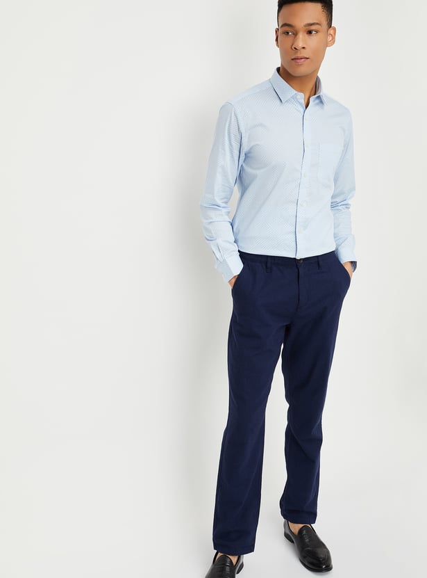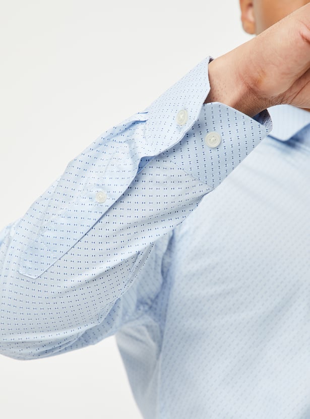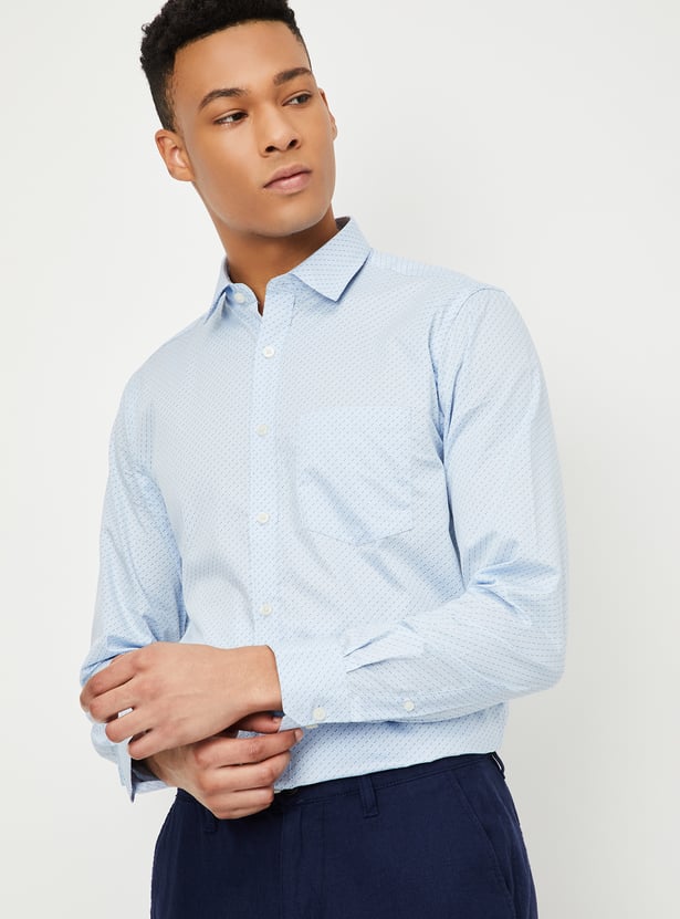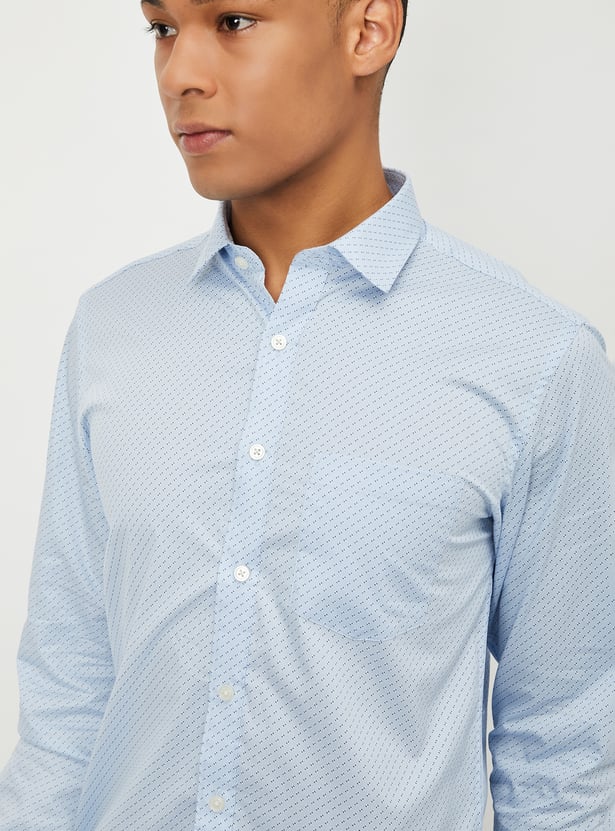 This printed slim-fit shirt is the perfect mix of sharp and casual. Featuring a spread collar, full sleeves with button cuffs, and a patch pocket, it’s designed to keep you looking polished no matter the occasion.
