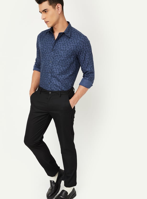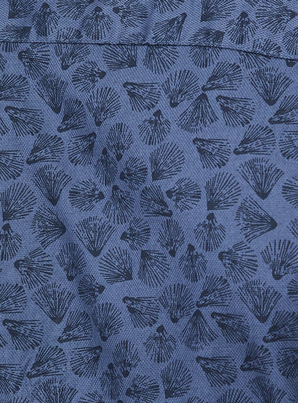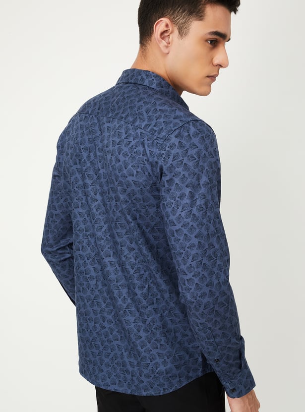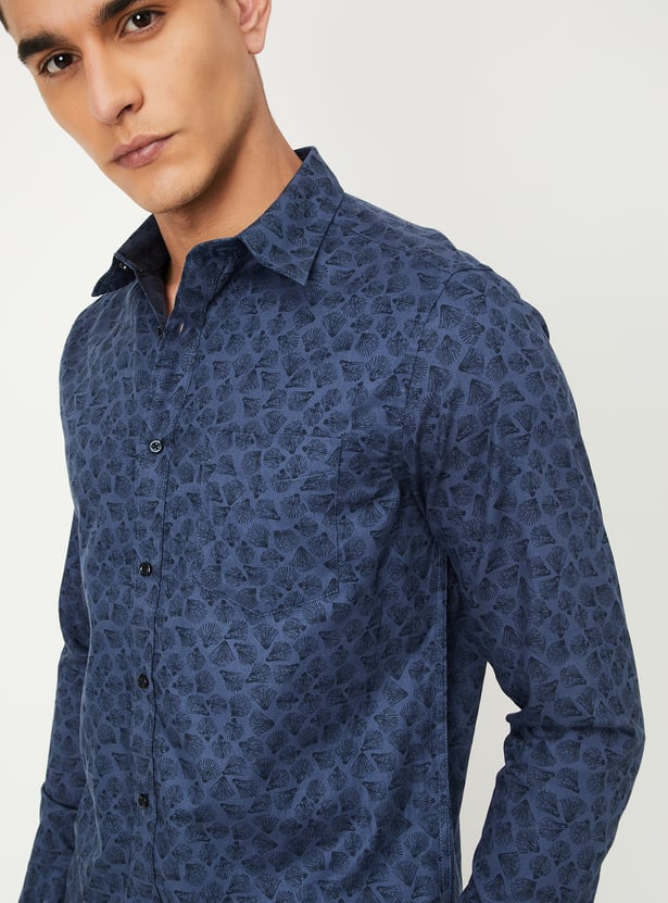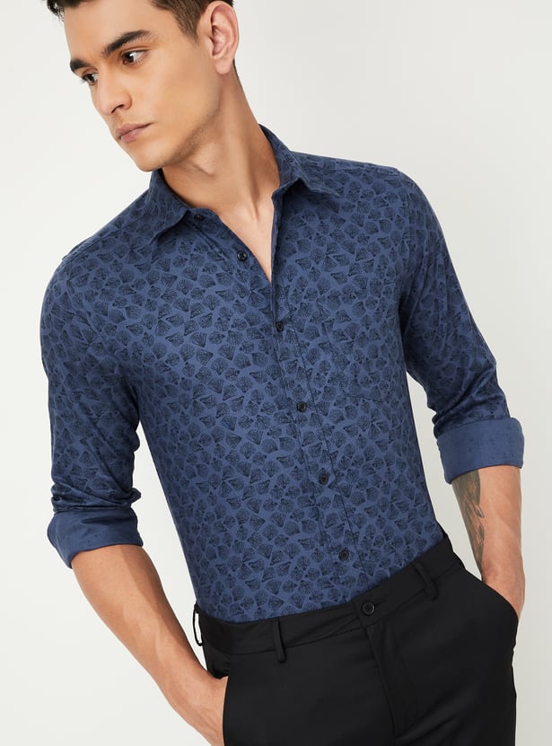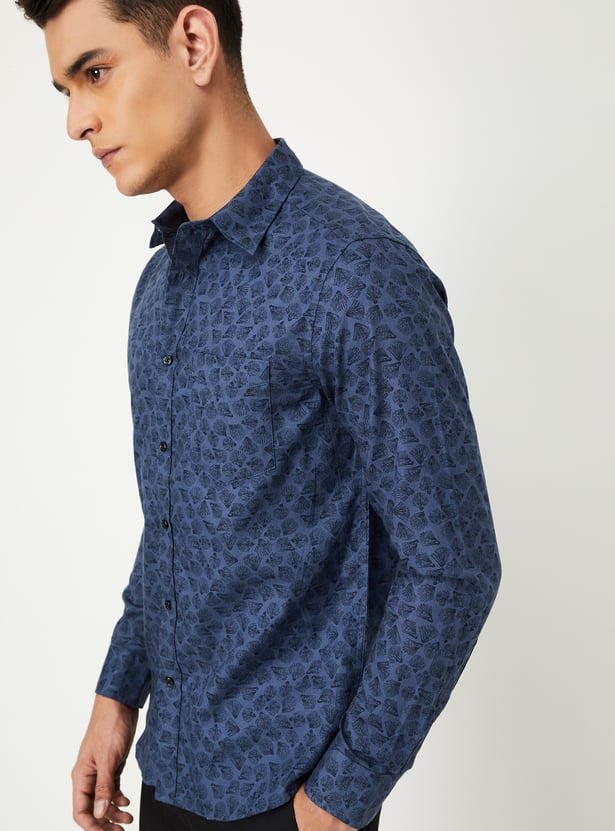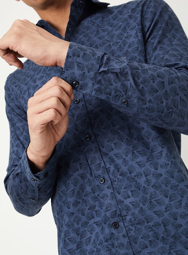 This printed slim-fit shirt combines style and sophistication with a button placket, spread collar, and full sleeves with button cuffs. The patch pocket adds a functional touch to this sharp, tailored look.