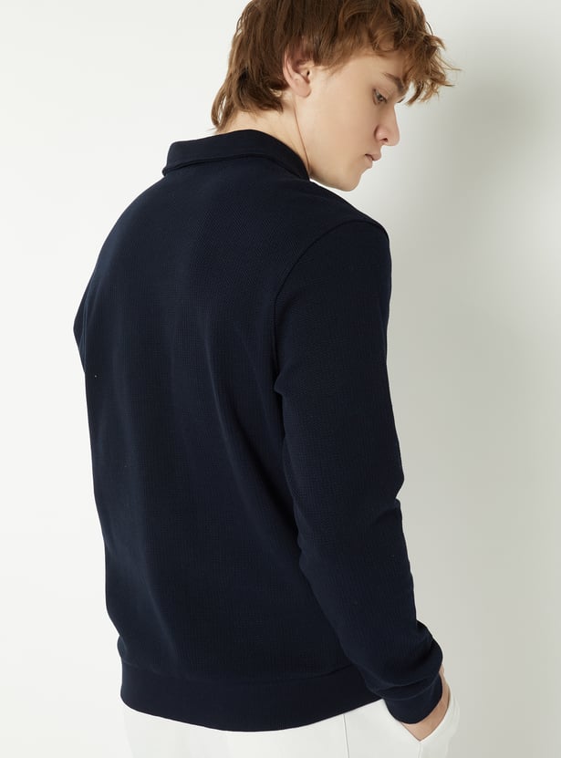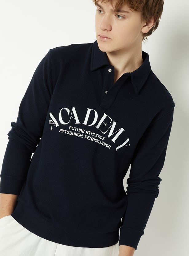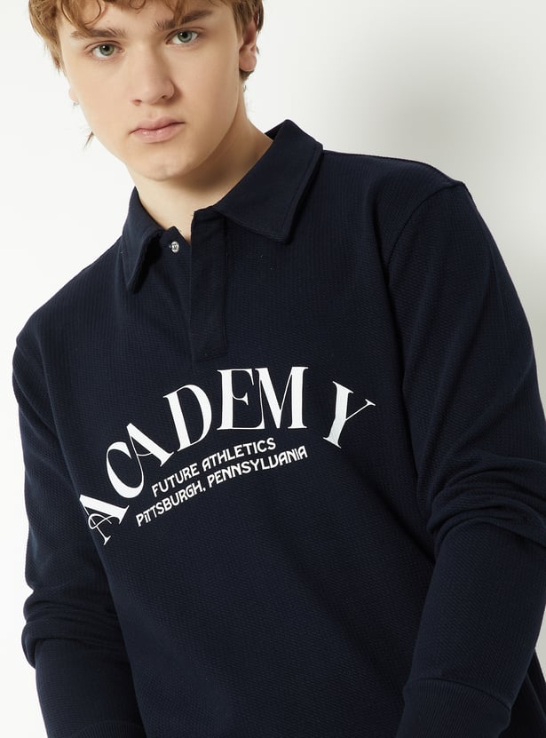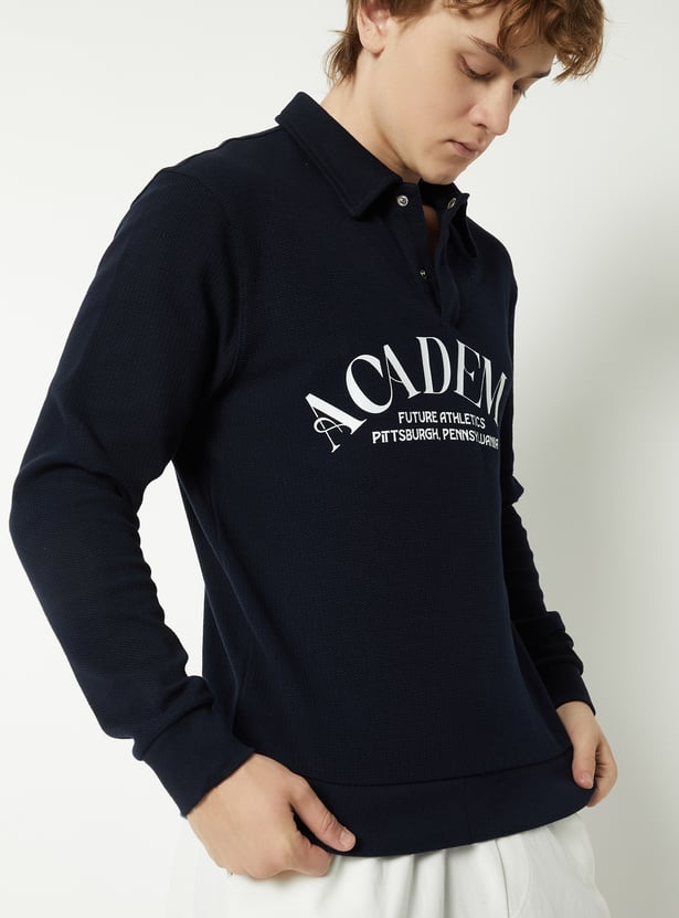 Upgrade your casual wardrobe with this printed sweatshirt, featuring a spread collar and full sleeves for a comfortable, stylish fit.