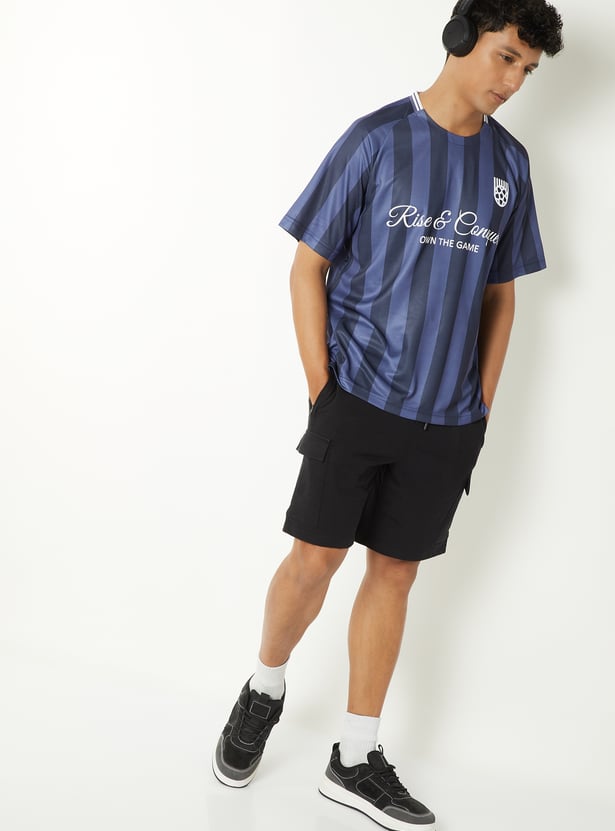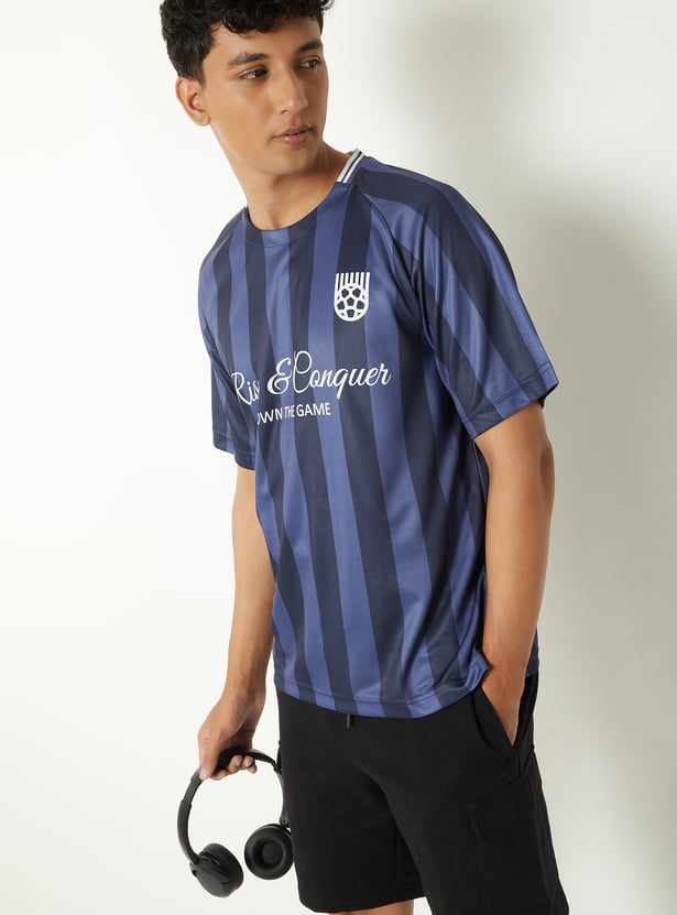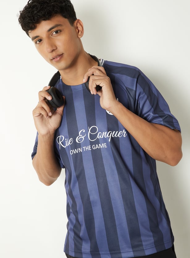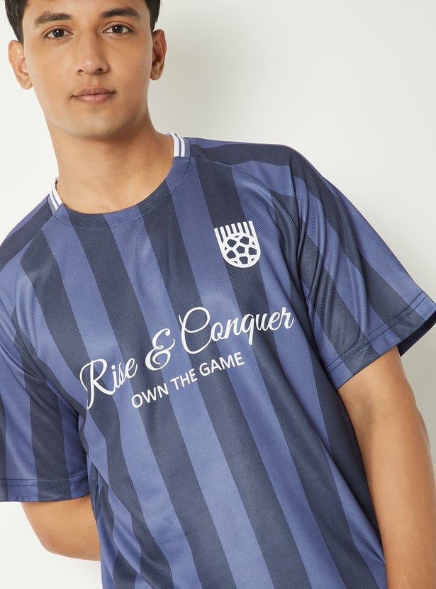 Stay active in style with this printed sports T-shirt designed for everyday comfort. Featuring a crew neck and half sleeves, it offers a relaxed fit for workouts or casual wear.