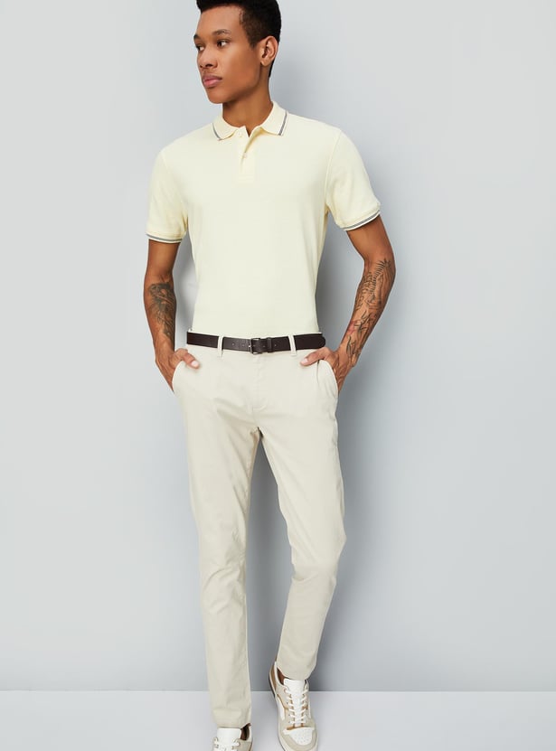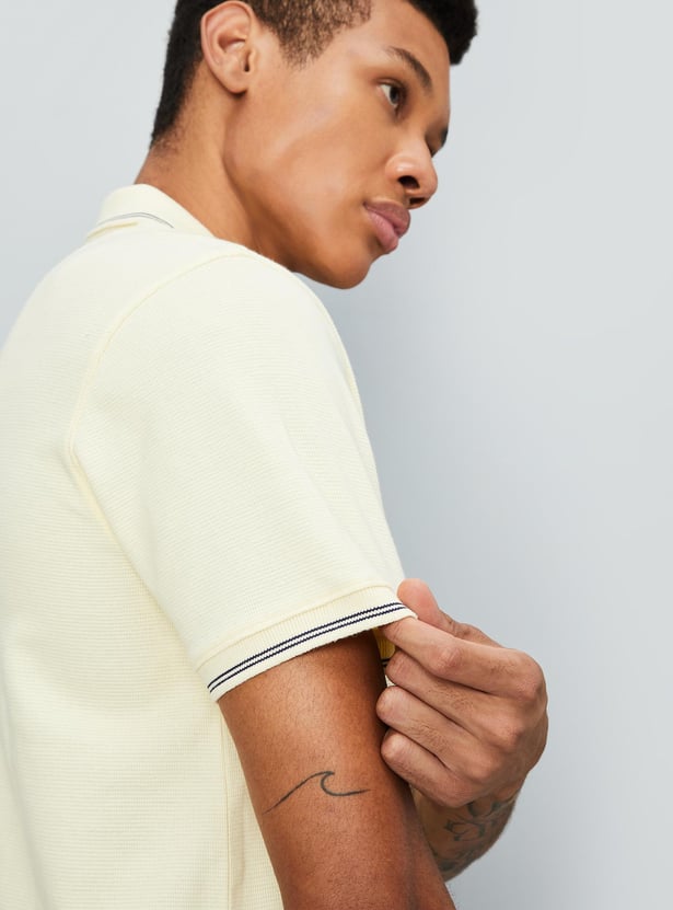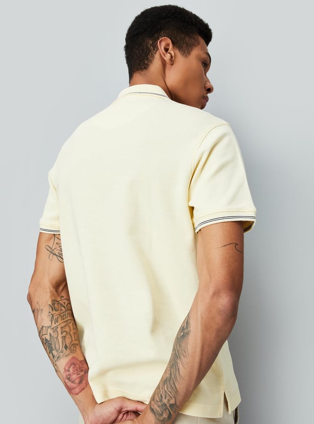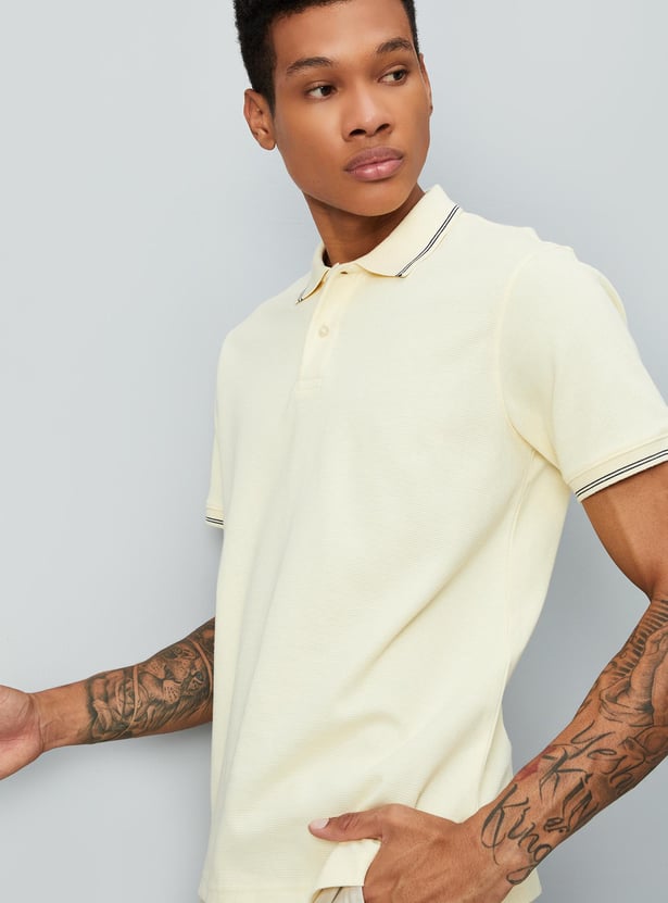 Elevate your casual style with our solid polo T-shirt. Classic polo collar, half sleeves, and a two-button placket offer refined comfort.