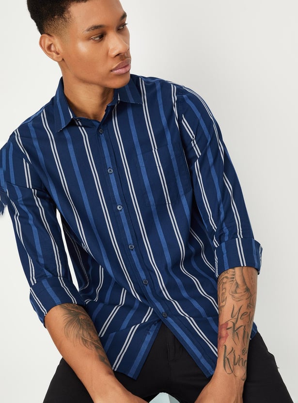 Elevate your casual style with this striped shirt. Featuring a spread collar, full sleeves, patch pocket, and button placket, it's the epitome of modern sophistication.