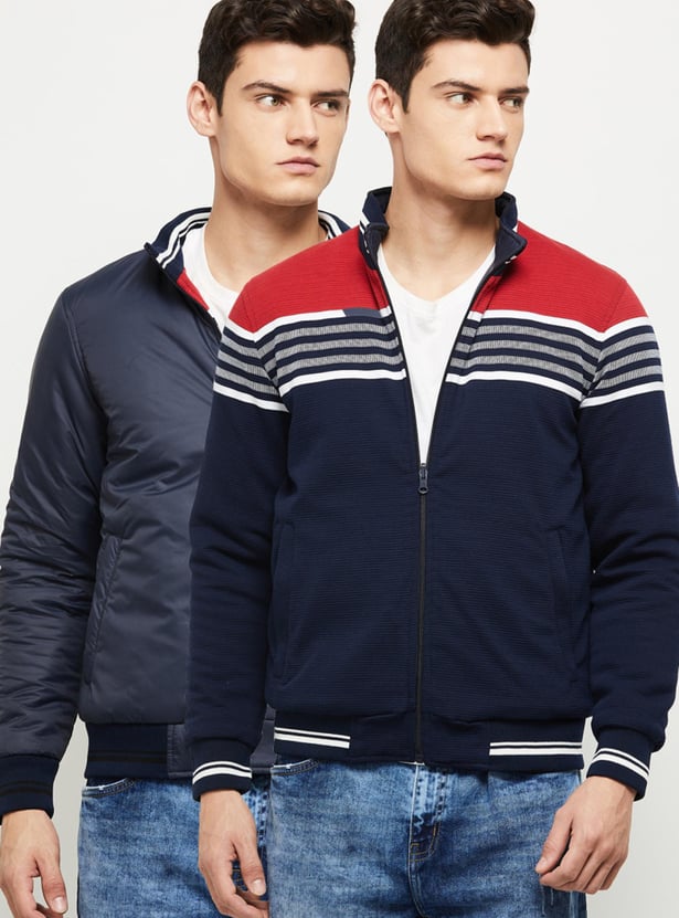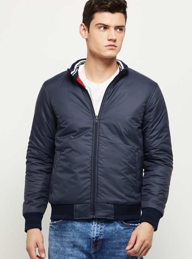 Complete your casual collection with this cool reversible puffer jacket which has a mock collar, full zip closure, long sleeves, and two pockets. Style it with a shirt and dark jeans for a dapper yet winter-ready look.