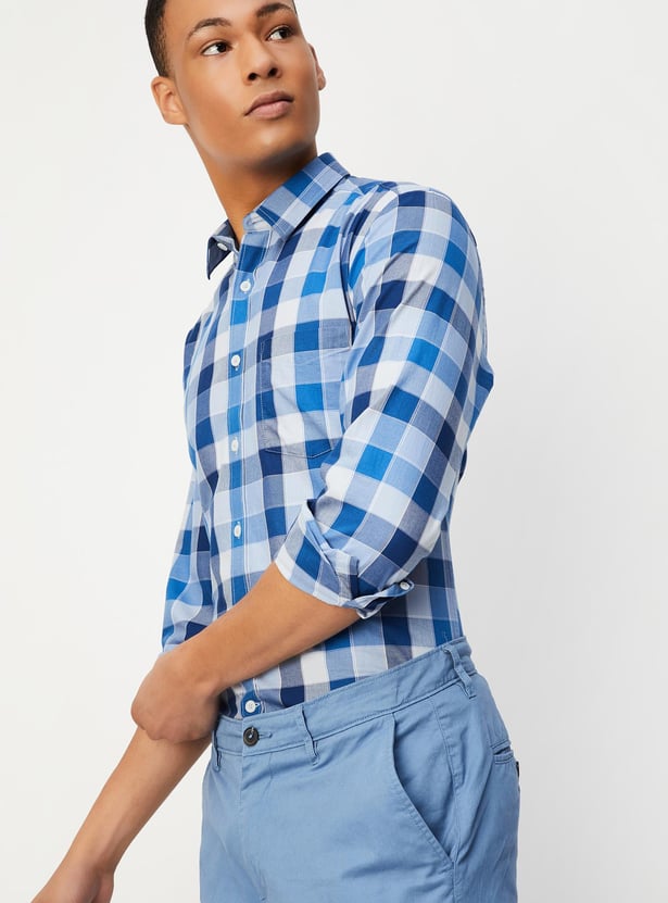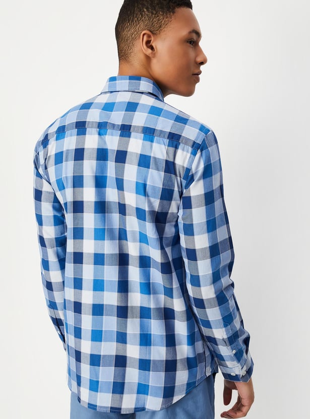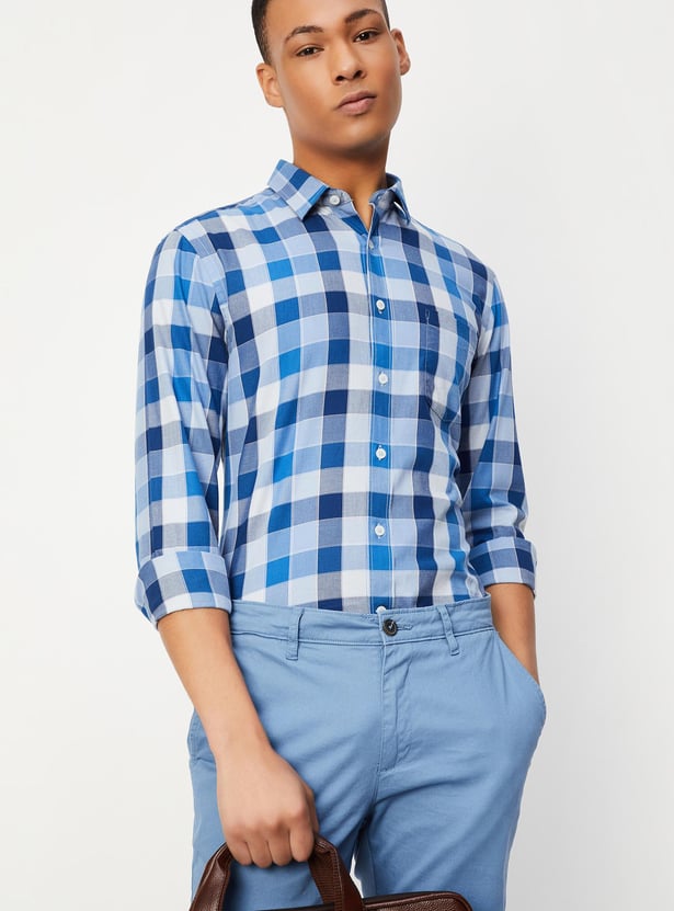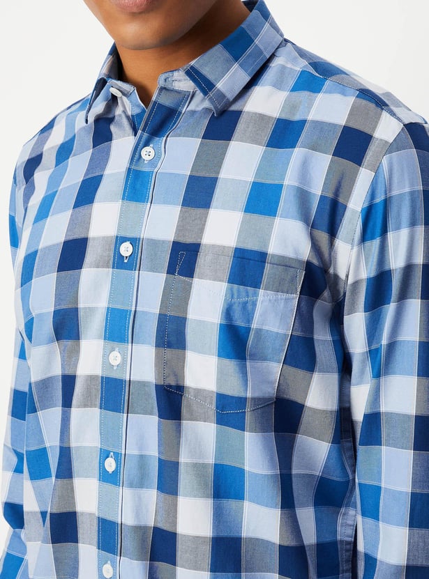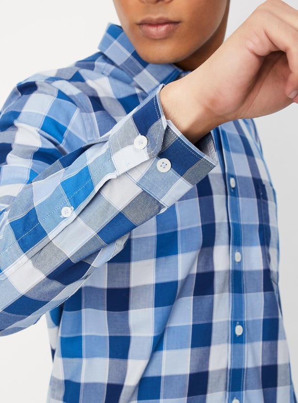 This checked shirt, which has a spread collar, full sleeves, a button placket, and a patch pocket, can spruce up your casual collection. Style it with a pair of chinos and sneakers for a dapper look.