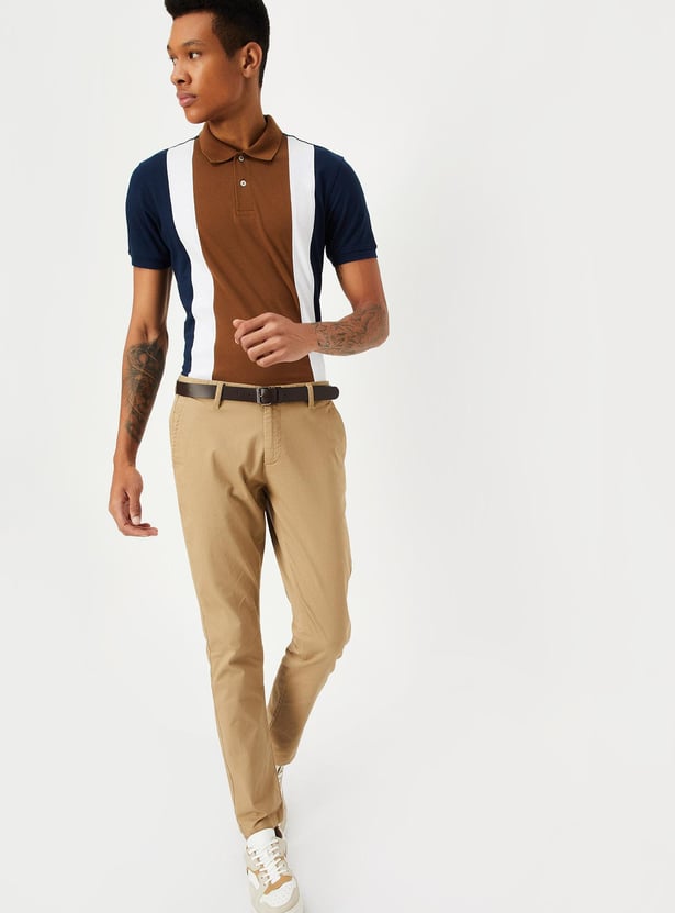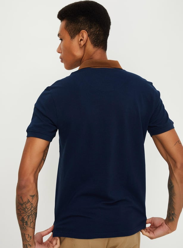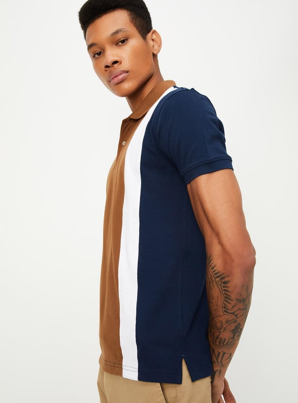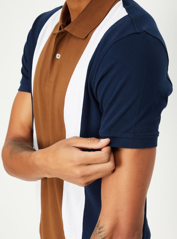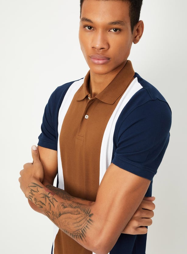 Step up your street style with this T-shirt. It features a colourblocked design, a polo collar and short sleeves.