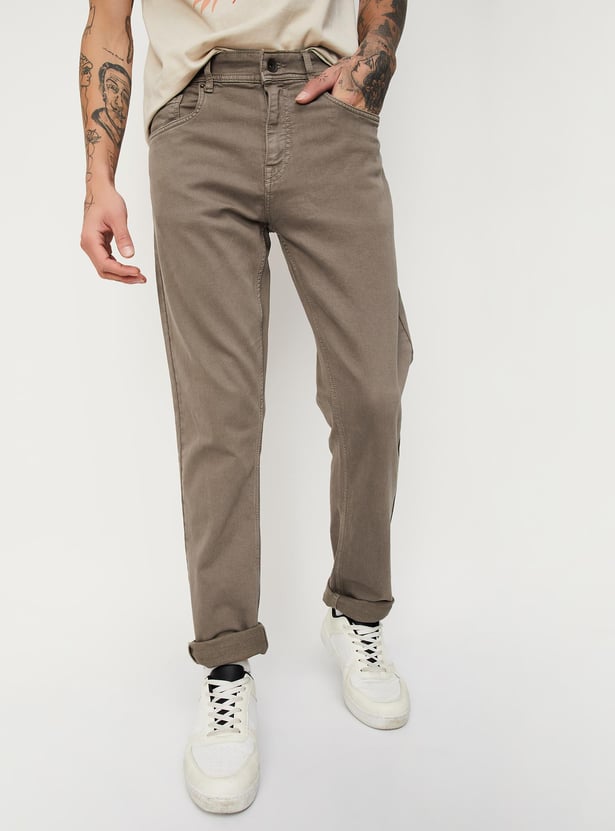 These slim-fit jeans with a solid surface, belt loop waist, and 5 pockets will jazz up your denim wardrobe. These jeans offer plenty of modern style, ready to mix and match with anything in your wardrobe to lift your look.