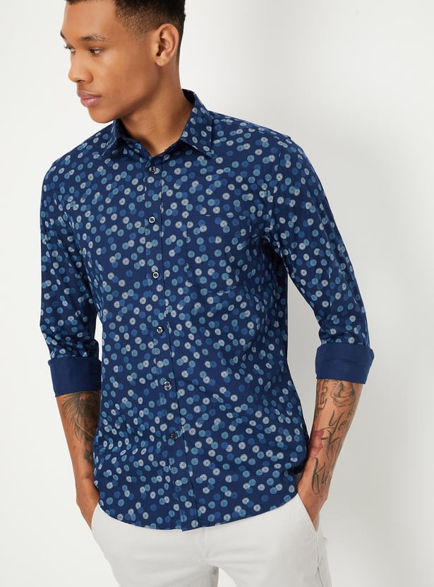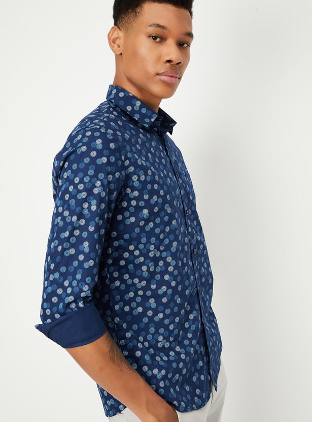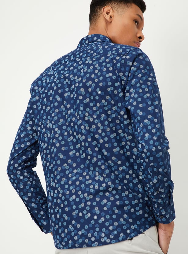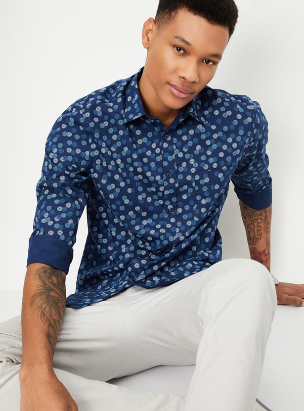 This printed shirt is the ideal complement to your casual collection. It features a spread collar, full sleeves, a button placket and a patch pocket.
