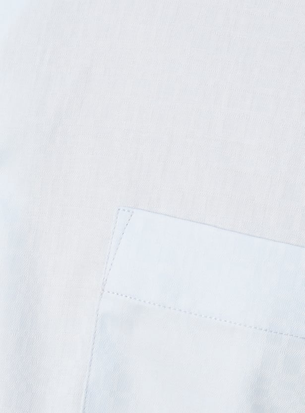 Elevate your formal attire with this sophisticated checked shirt. With a spread collar, full sleeves featuring button cuffs, a button placket, and a patch pocket, it exudes timeless elegance.