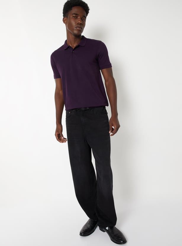 Elevate your casual style with our solid polo T-shirt. Classic polo collar, half sleeves, and a two-button placket offer refined comfort.
