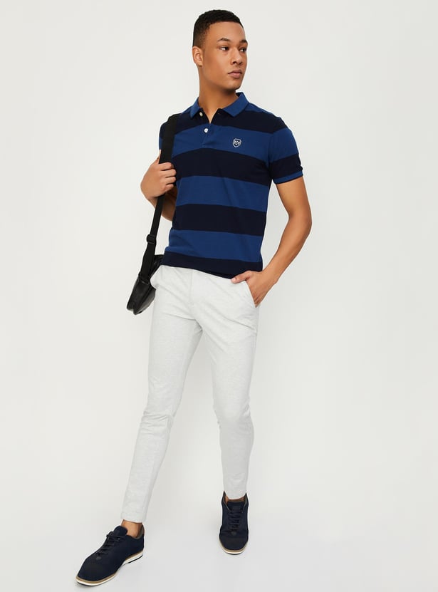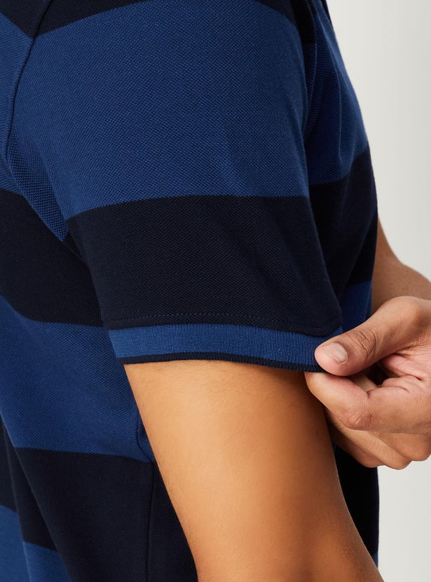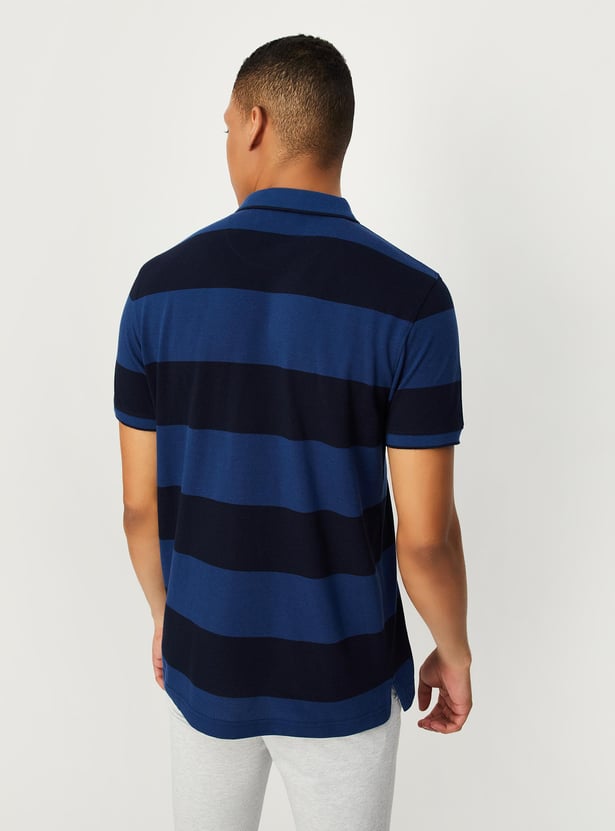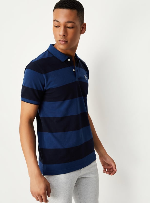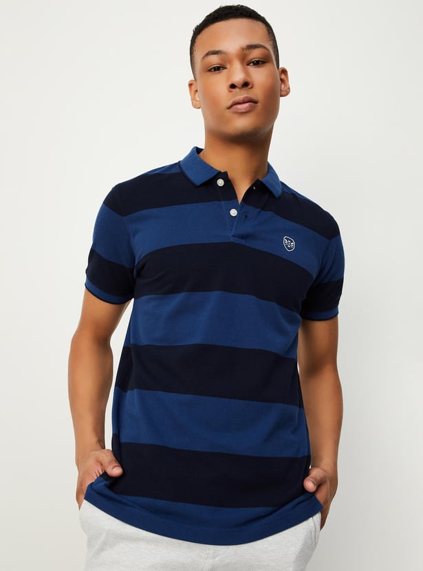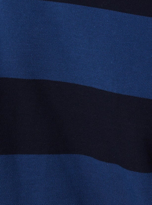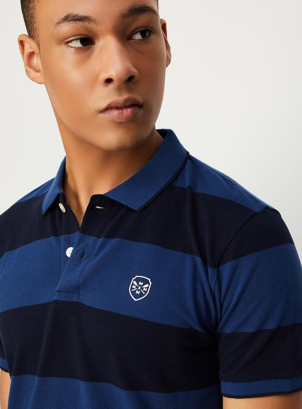 This striped polo t-shirt with short sleeves, a polo collar, and a button placket adds a fashionable flair to your casual outfit. Wear it with jeans and sneakers for a trendy appearance.