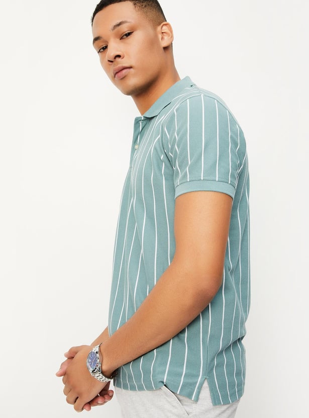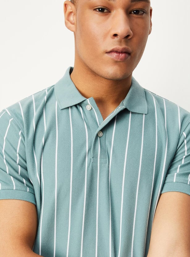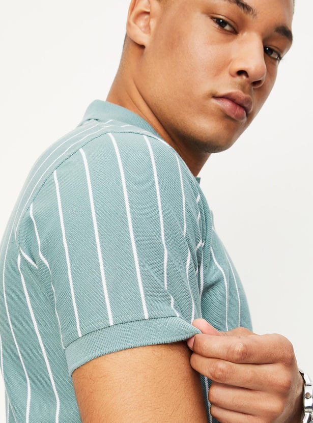 Infuse a trendy flair into your casual wardrobe with this striped polo t-shirt. Featuring short sleeves, a classic polo collar, and a button placket, it adds a fashionable edge to your casual attire.
