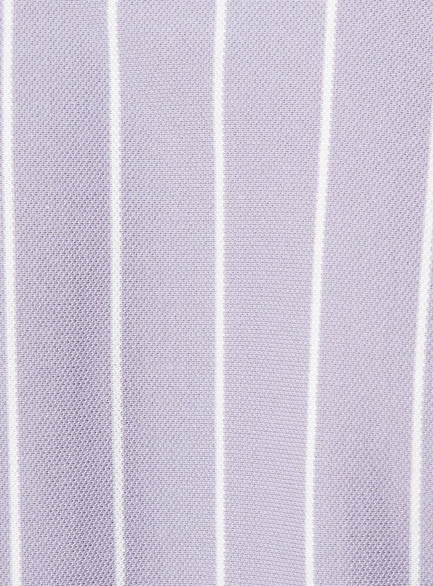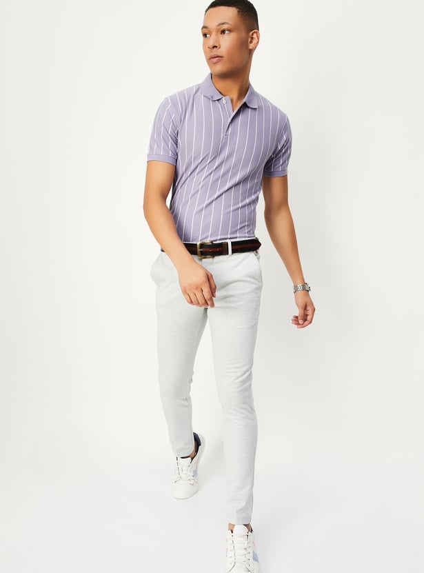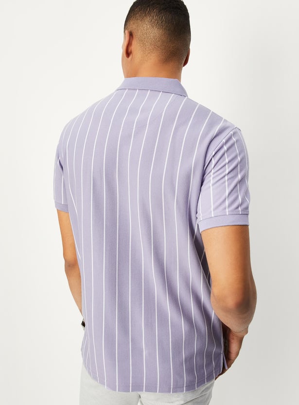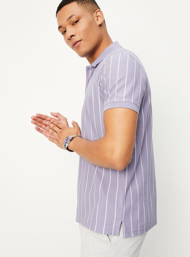 Infuse a trendy flair into your casual wardrobe with this striped polo t-shirt. Featuring short sleeves, a classic polo collar, and a button placket, it adds a fashionable edge to your casual attire.
