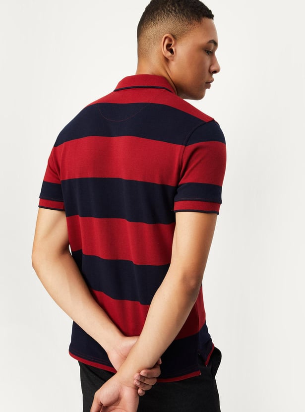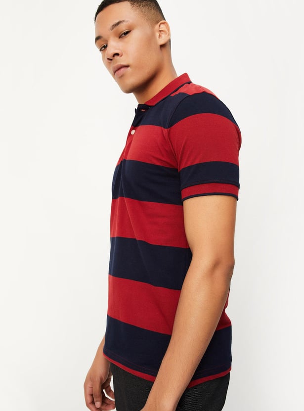 Men Slim Fit Striped Polo T-shirt