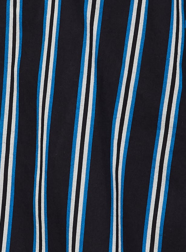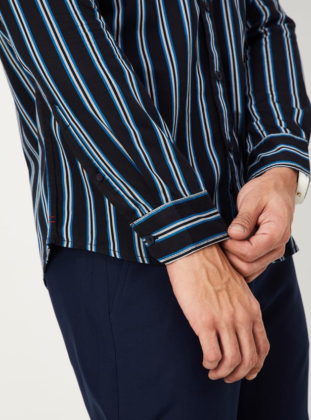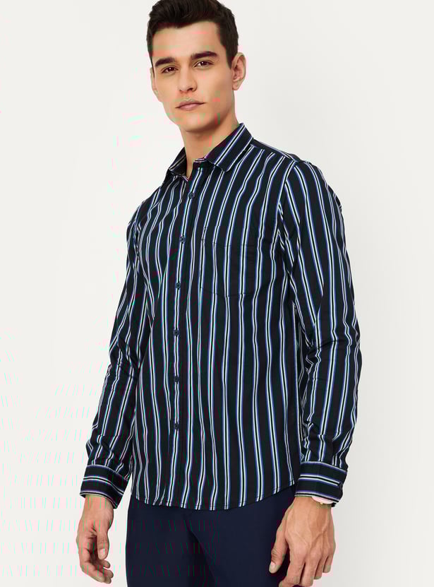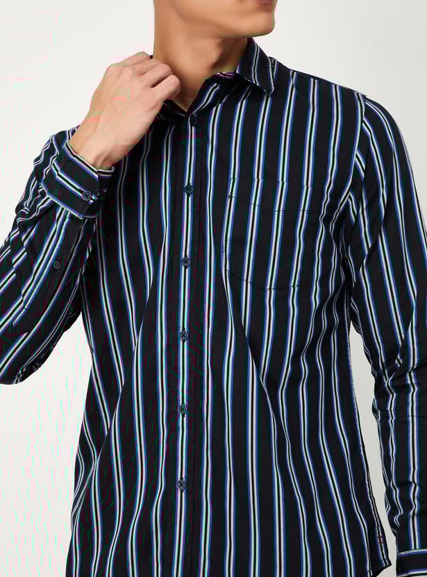 Add a touch of casual style to your wardrobe with this striped shirt. Featuring a spread collar, full sleeves, a button placket, and a patch pocket, it's easy to pair with jeans and sneakers for a fashionable look.