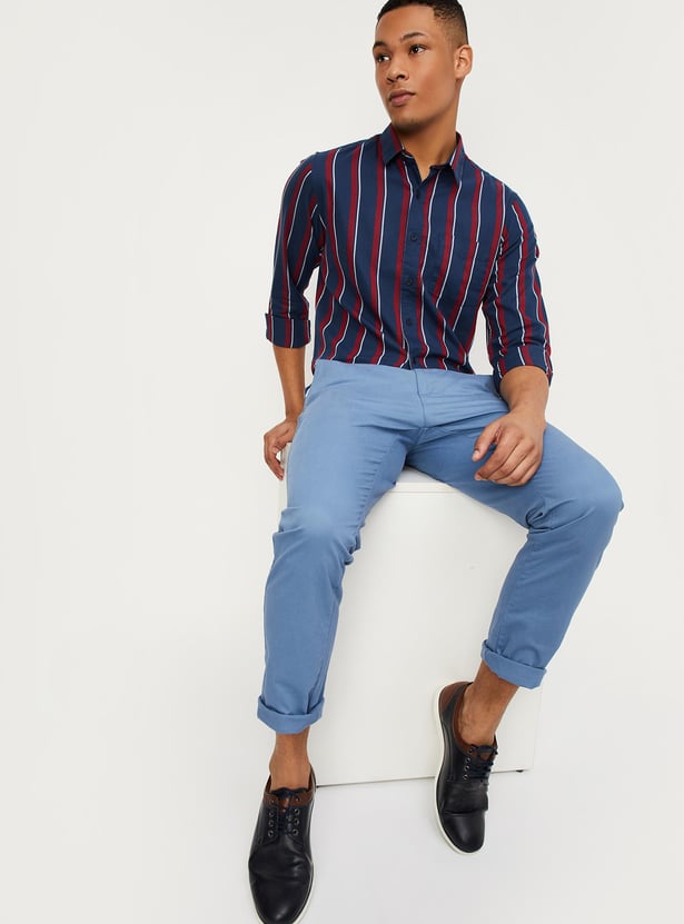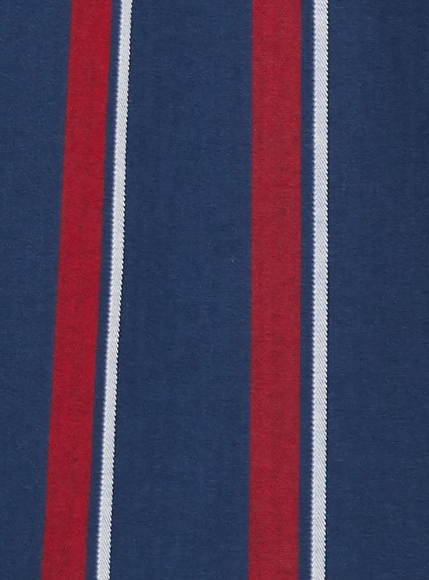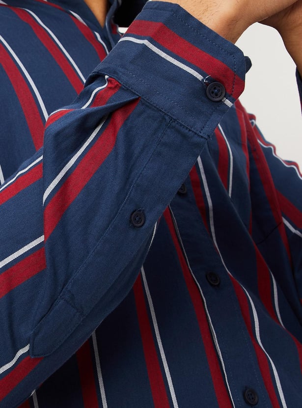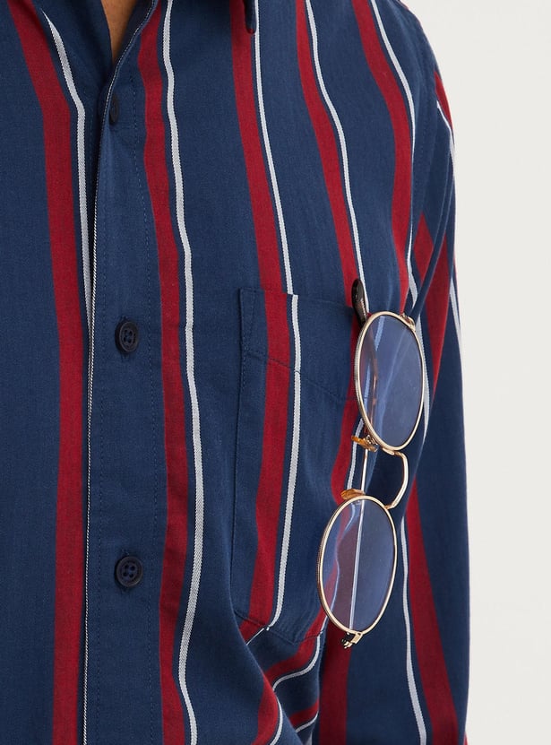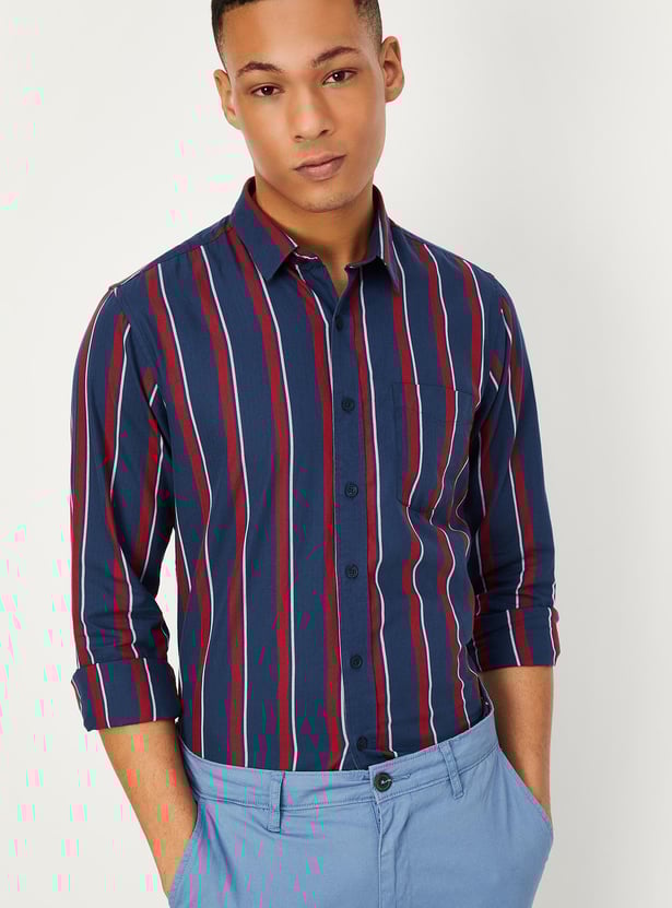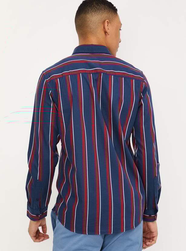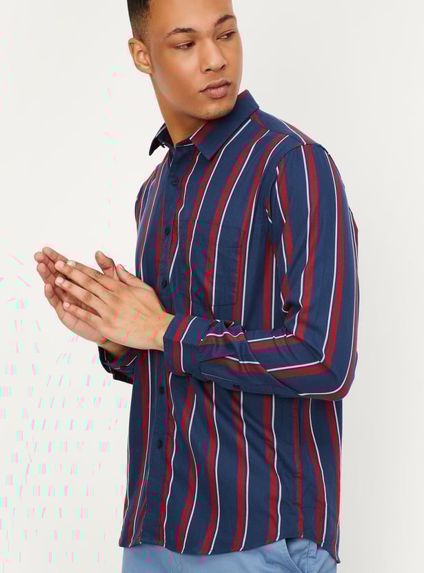 Add a touch of casual style to your wardrobe with this striped shirt. Featuring a spread collar, full sleeves, a button placket, and a patch pocket, it's easy to pair with jeans and sneakers for a fashionable look.