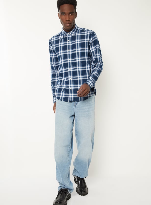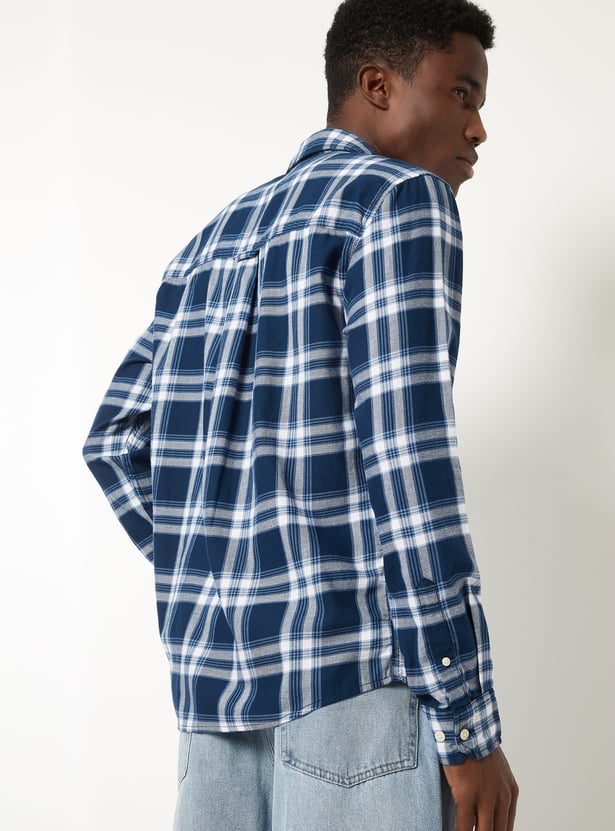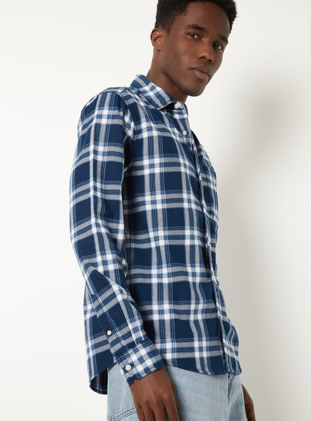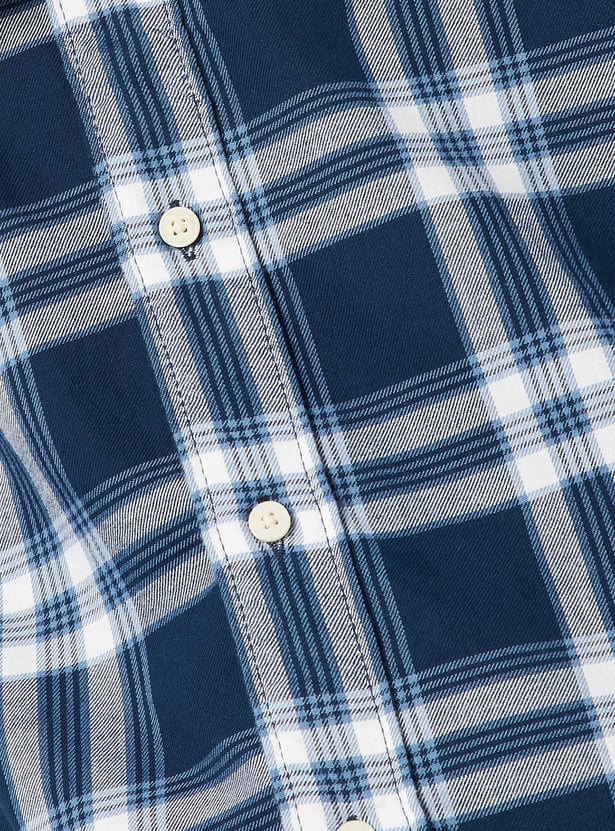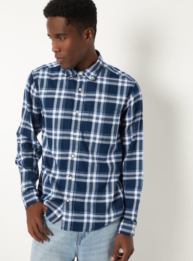 Upgrade your everyday style with this checked regular fit shirt, featuring a button‑down collar, full sleeves with cuffs, a patch pocket and a button placket. The curved hem adds a refined finish, making it versatile for both casual and semi‑formal looks.