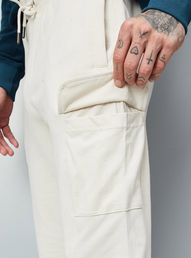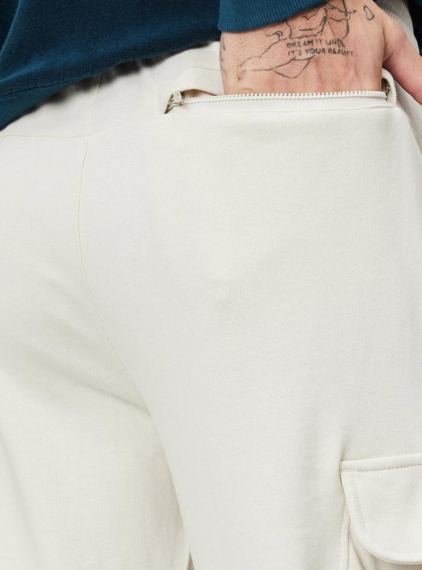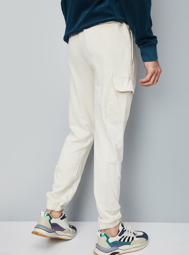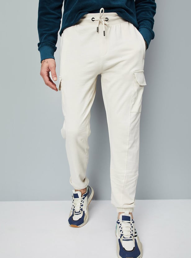 Up your casual style with his pair of joggers rendered in a solid tone. It features a drawstring waist, zipped side pockets, cargo pockets, a back pocket, and a cuffed hem.