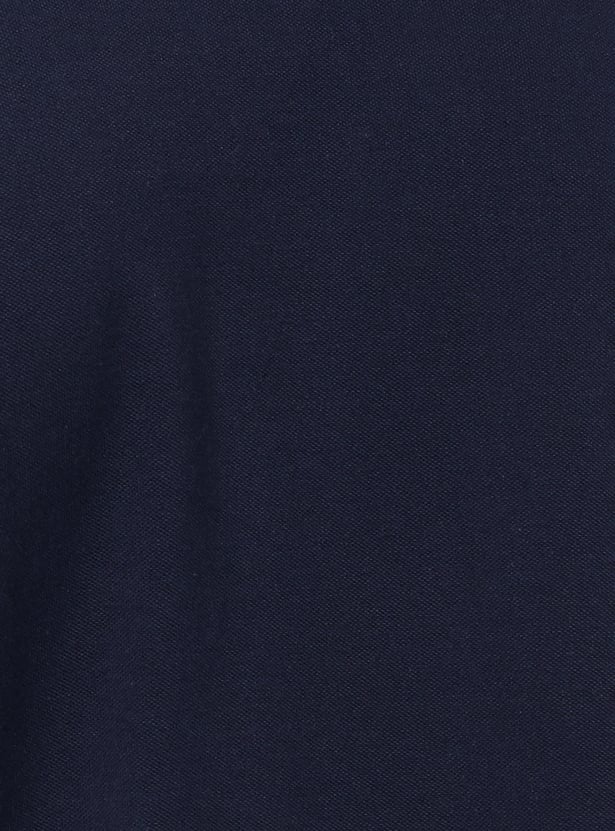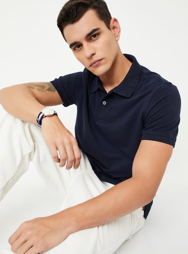 This T-shirt is the perfect balance of style and comfort. It has a polo collar, half sleeves, and a solid-tone finish. It has a two-button placket and side slits to complete the look.