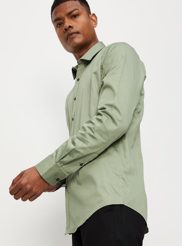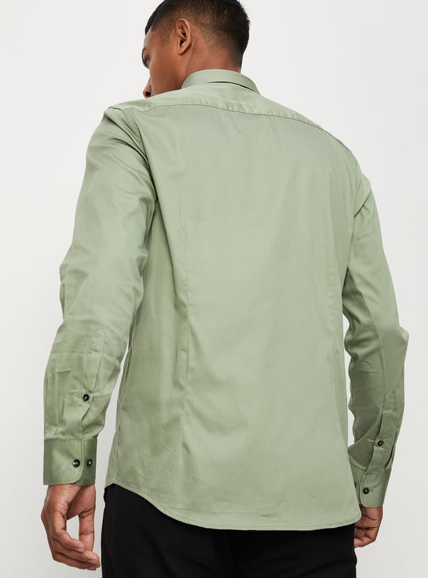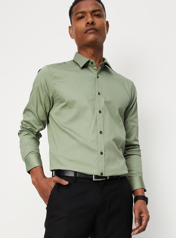 Men Solid Sateen Stretch Slim Fit Formal Shirt