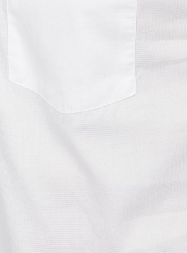 Enhance your fusion wear collection with this stylish kurta. It features a band collar, a half-button placket with a dobby woven design, and full sleeves with button cuffs.