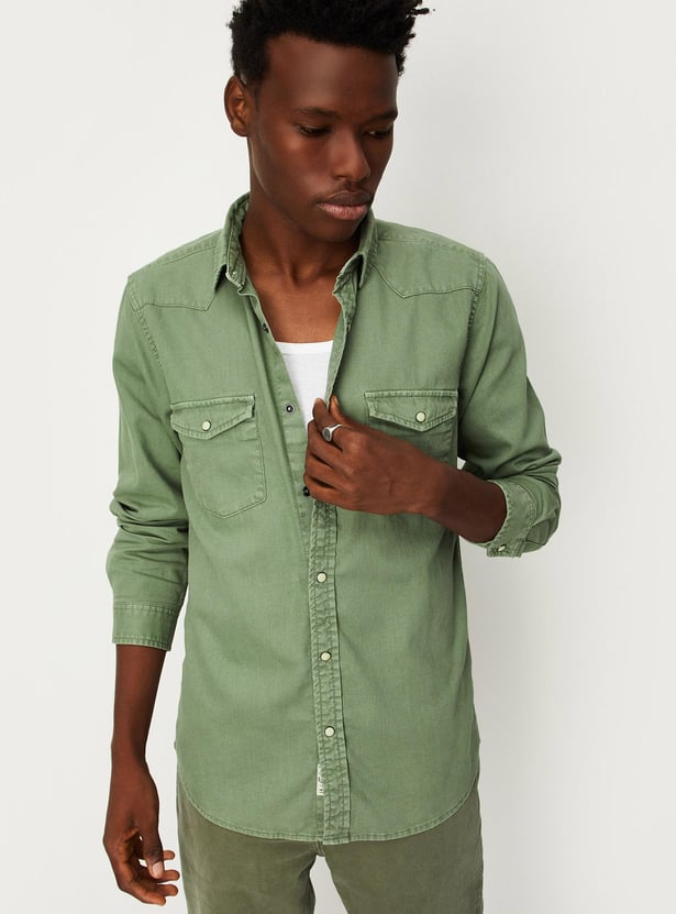 Men Solid Slim Fit Denim Shirt