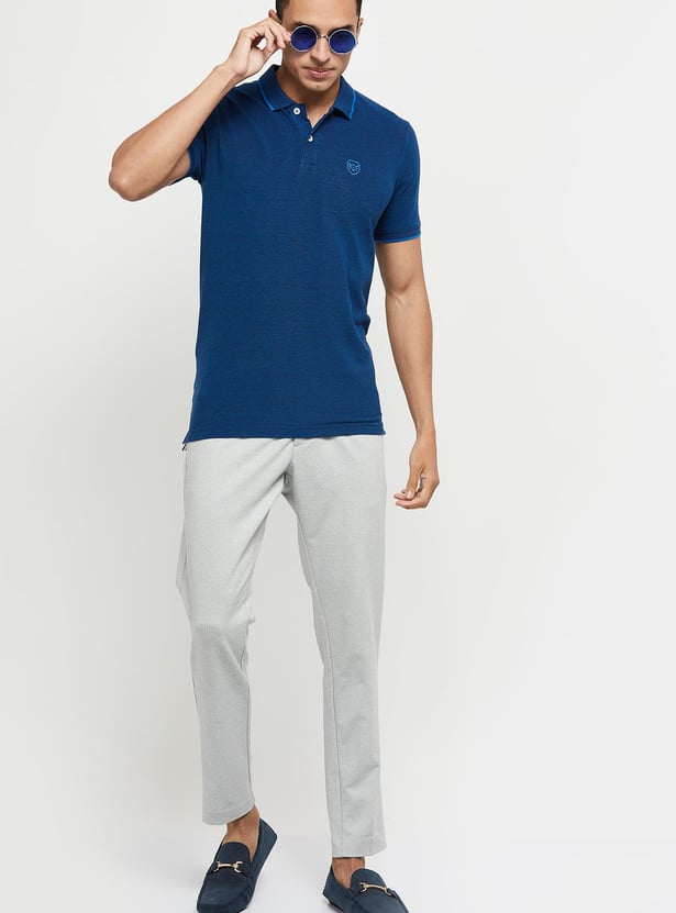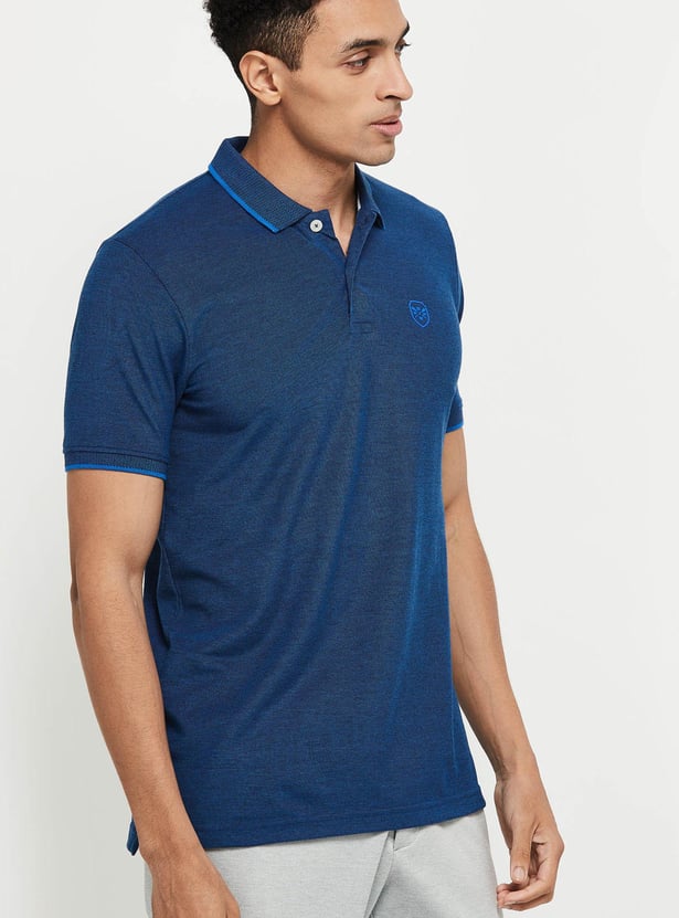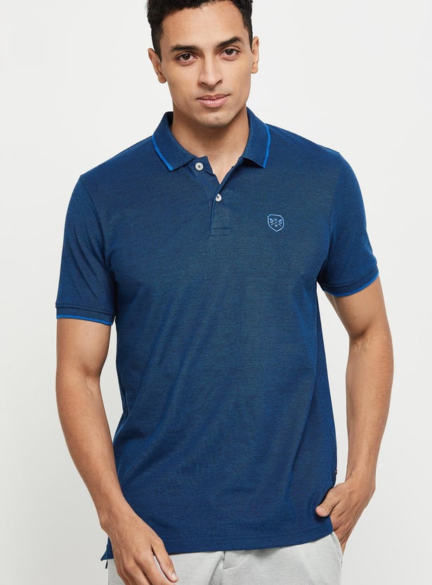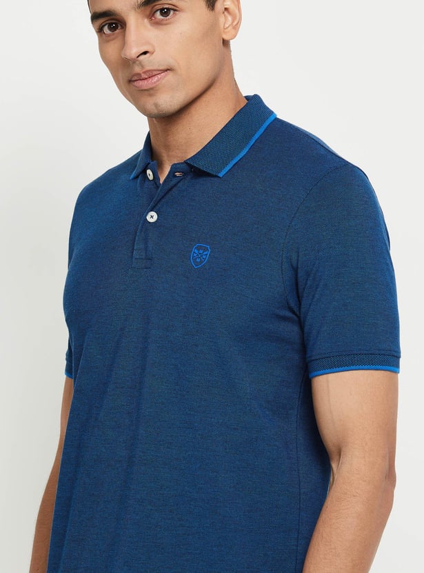 This stylish polo t-shirt is designed with a solid surface, short sleeves, and button closure.
