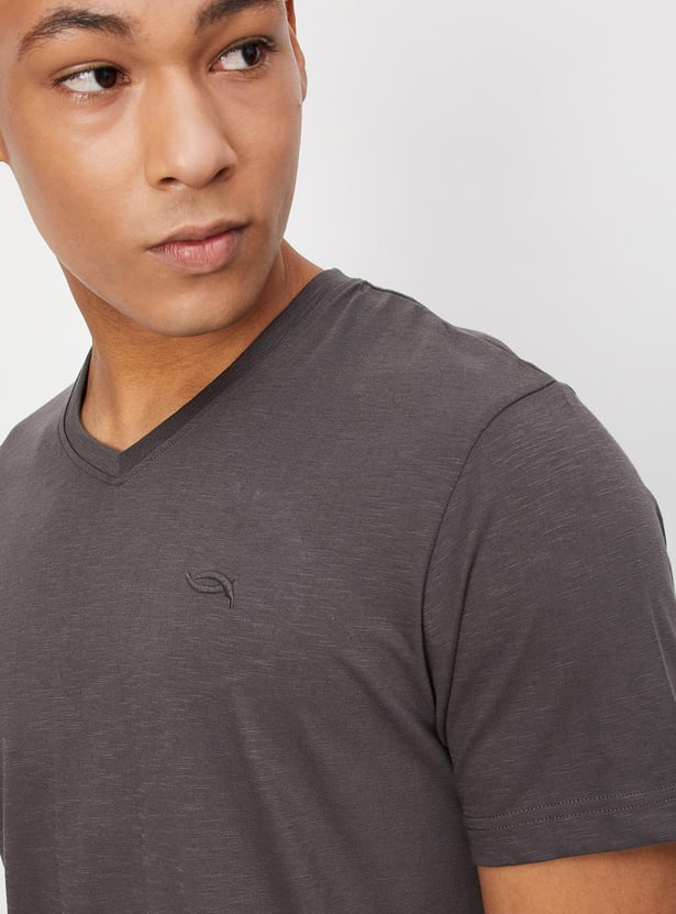Whether you are lounging on your sofa or out for a stroll, this T-shirt provides ultimate comfort. It is designed with a V-neck, slub design, and short sleeves.