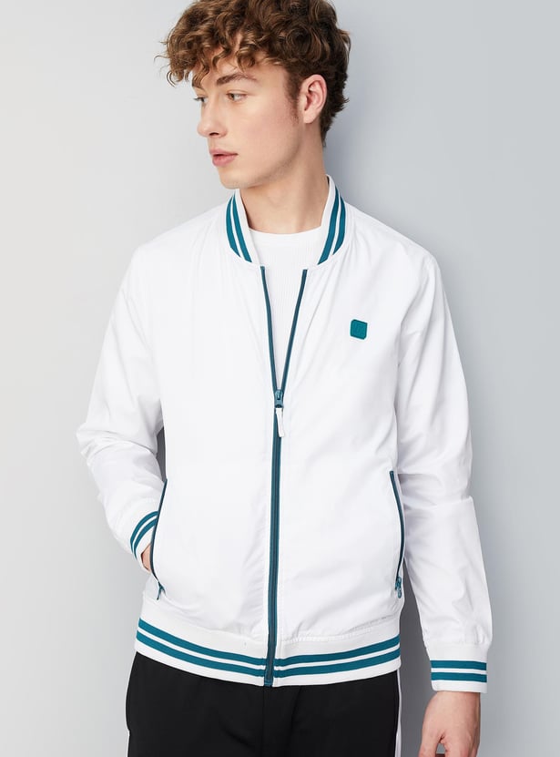 Elevate your style with this varsity sports jacket, featuring a baseball collar, full sleeves, and zip fastenings. Layer it over your sports t-shirt and joggers for a trendy and gym-ready look.
