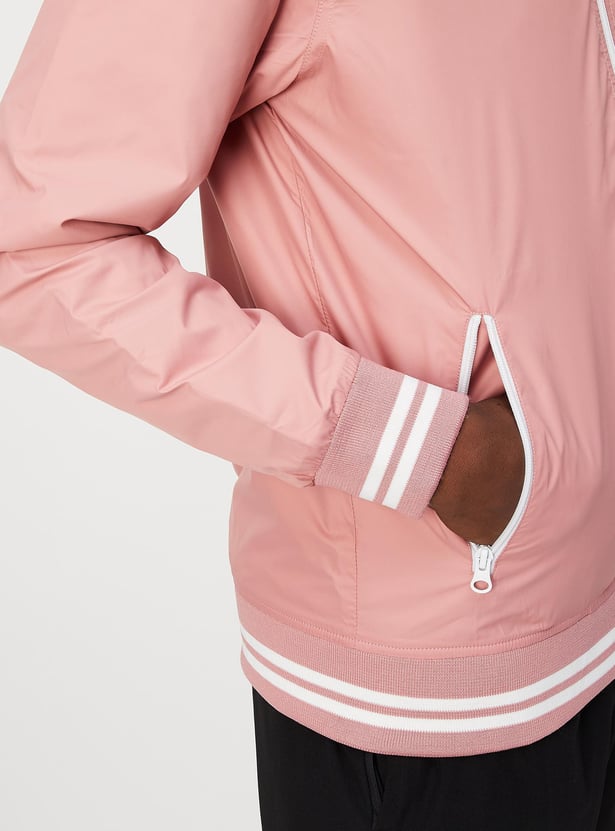Elevate your style with this varsity sports jacket, featuring a baseball collar, full sleeves, and zip fastenings. Layer it over your sports t-shirt and joggers for a trendy and gym-ready look.