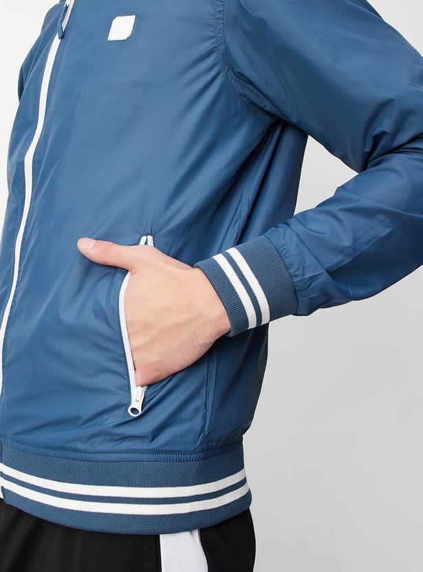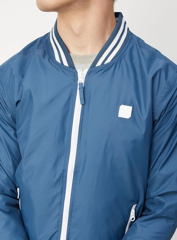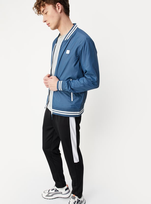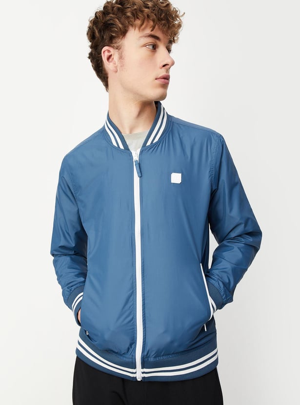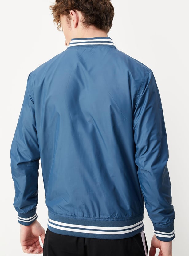 Elevate your style with this varsity sports jacket, featuring a baseball collar, full sleeves, and zip fastenings. Layer it over your sports t-shirt and joggers for a trendy and gym-ready look.
