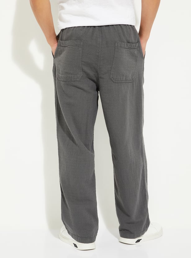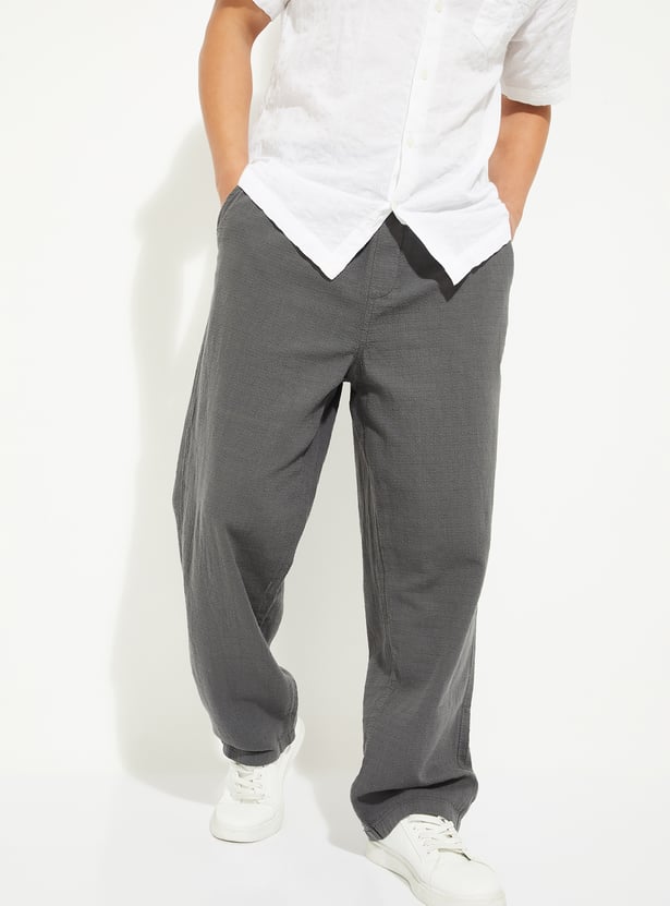 Men Solid Woven Pull-On Pants
