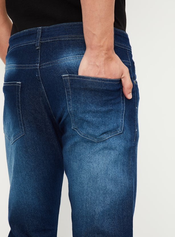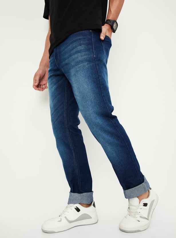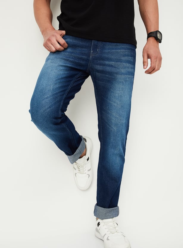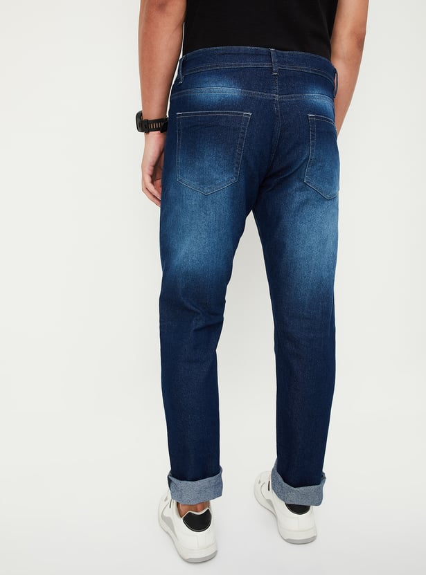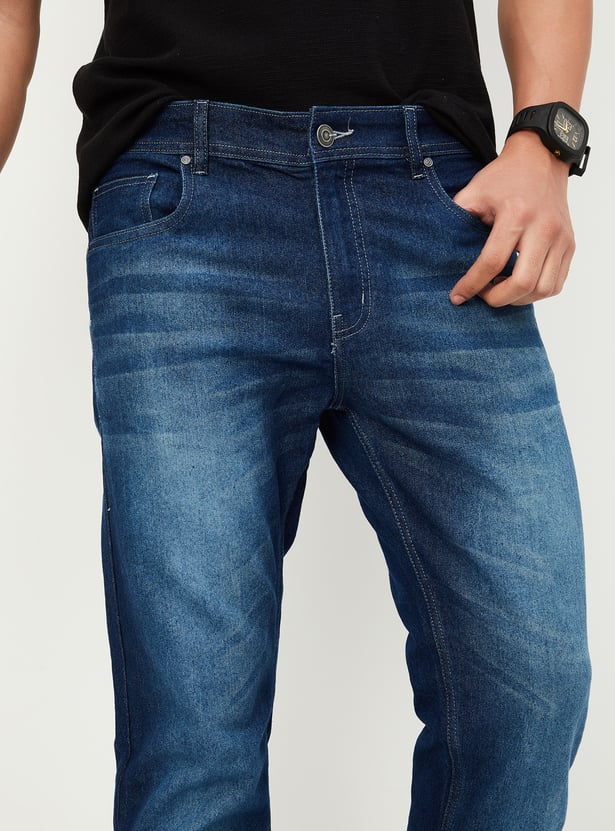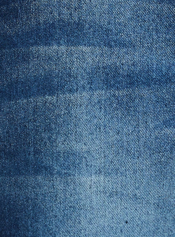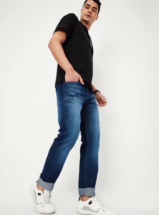 Round out your denim collection with this pair of stonewashed jeans designed with 5-pockets and has a button closure.