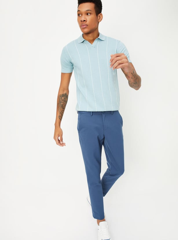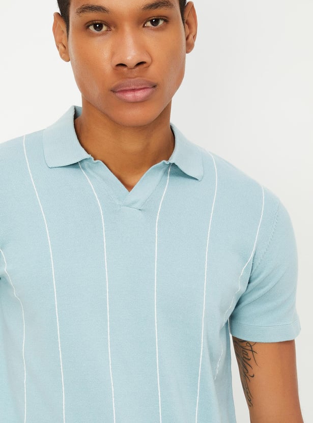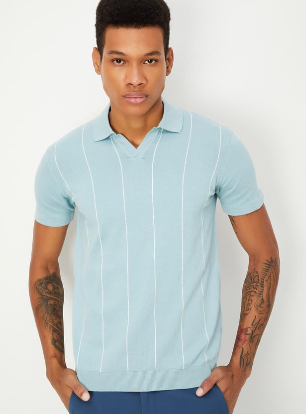 Men Striped Flat Knit Polo T-shirt
