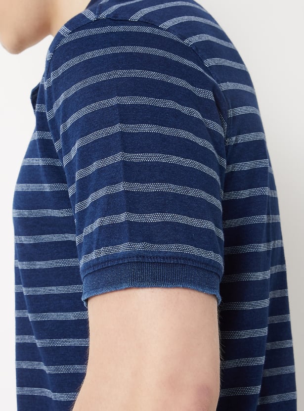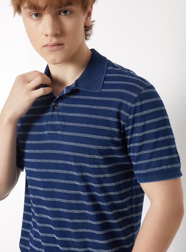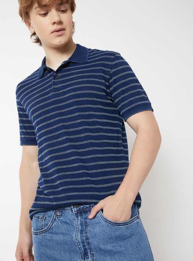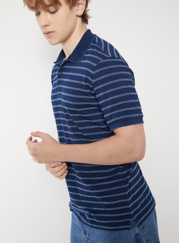 This striped polo T-shirt offers a fresh, sporty look with a stylish polo collar and half sleeves. The bold stripes add a modern touch to the classic polo design, making it perfect for both casual and smart-casual occasions.