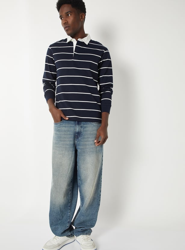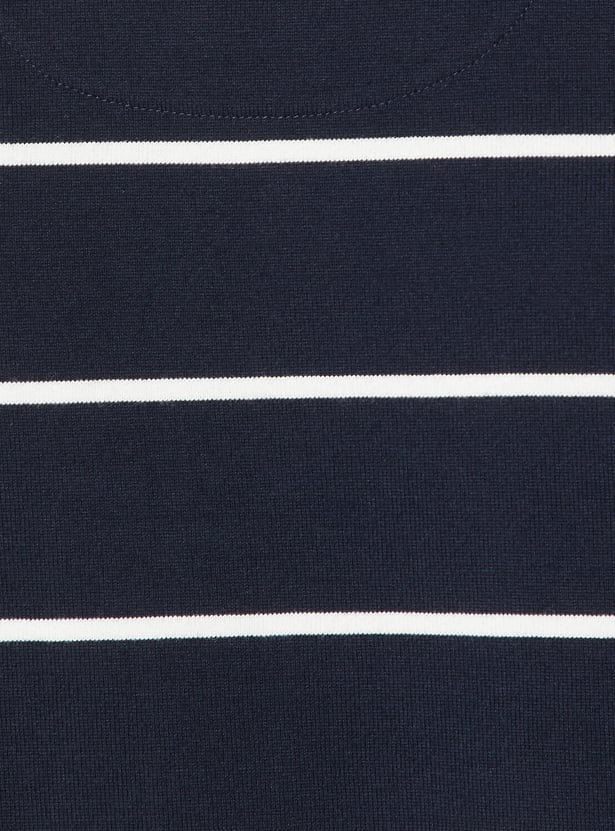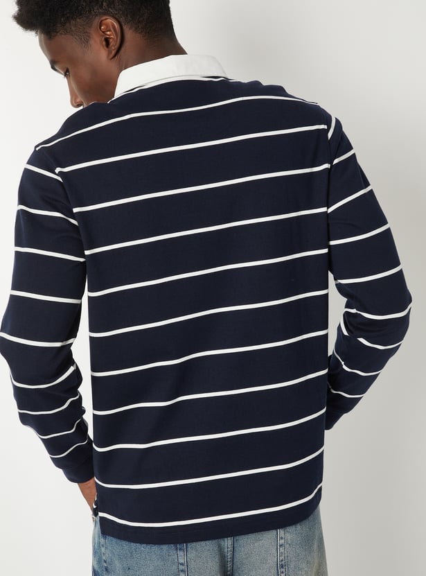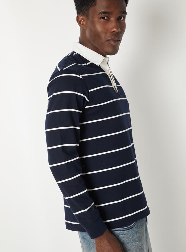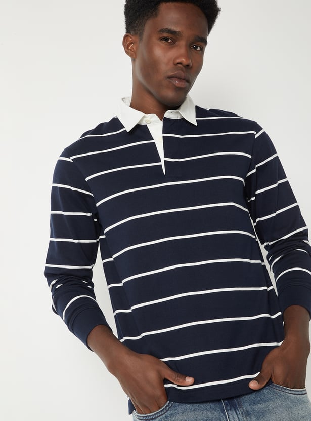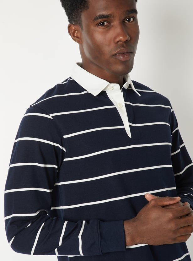 Refresh your everyday wardrobe with this striped polo T-shirt, crafted with a smart polo collar and full sleeves for a timeless look.