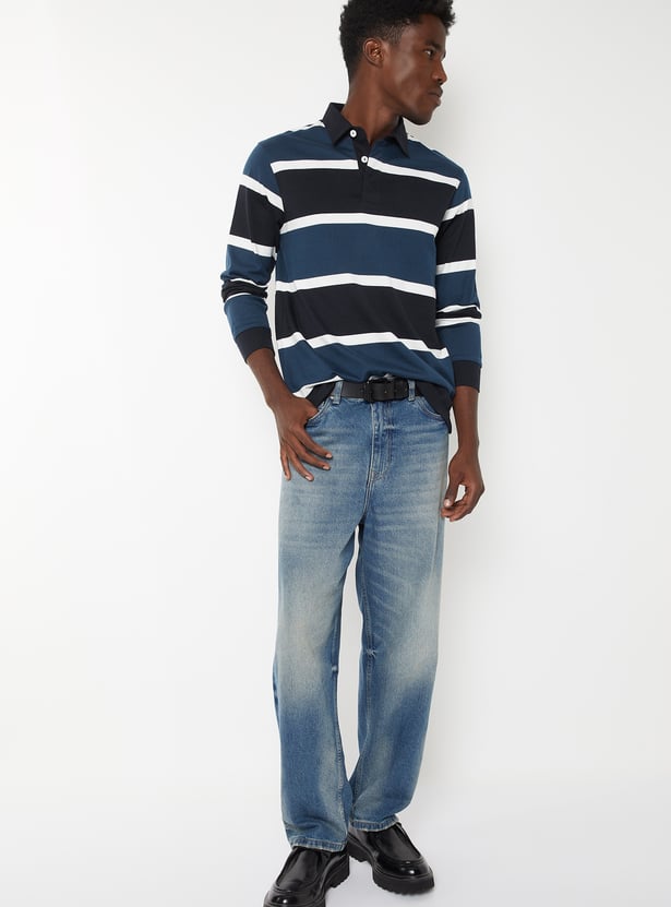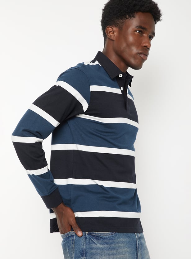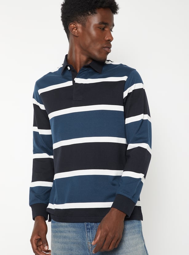 Elevate your casual style with this striped polo t-shirt, featuring a classic polo collar and full sleeves. Crafted for comfort and versatility, it blends timeless design with a relaxed yet refined look — perfect for everyday wear.