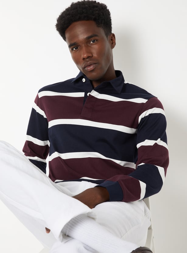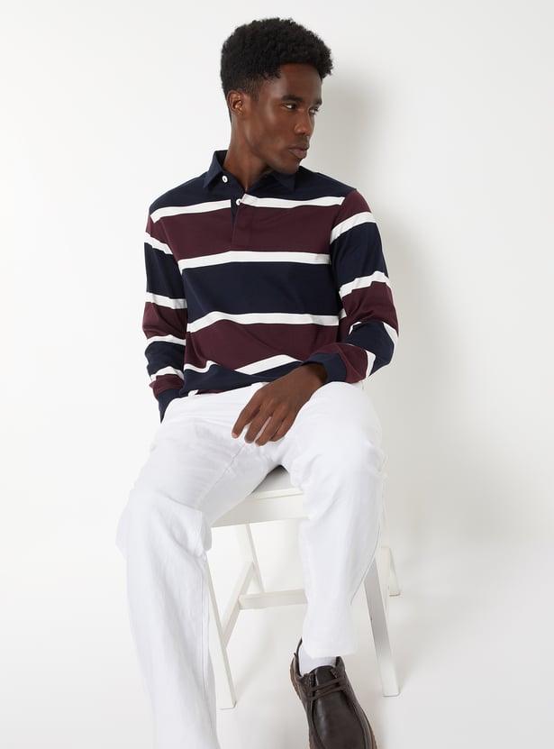 Elevate your casual style with this striped polo t-shirt, featuring a classic polo collar and full sleeves. Crafted for comfort and versatility, it blends timeless design with a relaxed yet refined look — perfect for everyday wear.