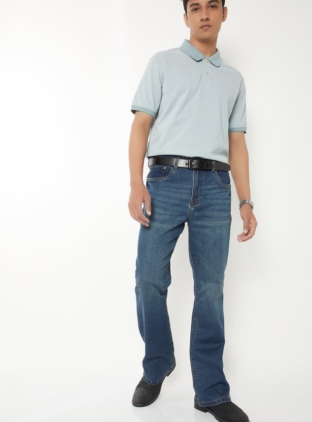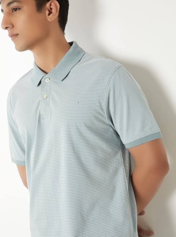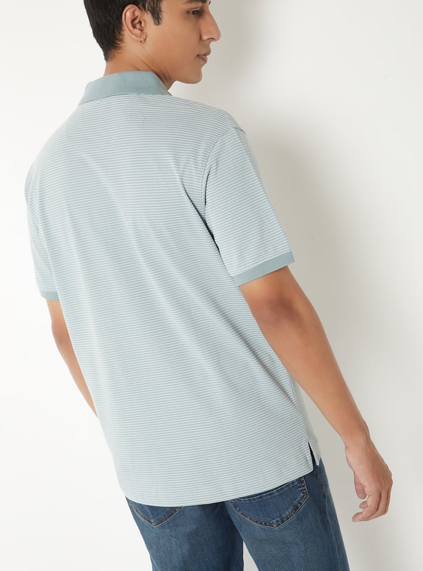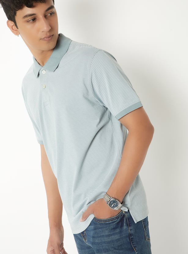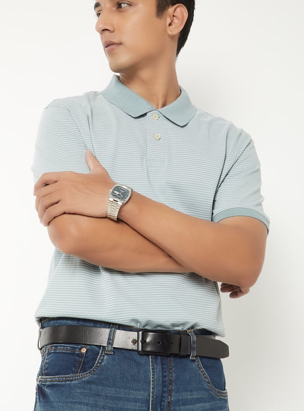 Add timeless charm to your wardrobe with this striped polo t-shirt. It features a polo collar, half sleeves for a timeless look.