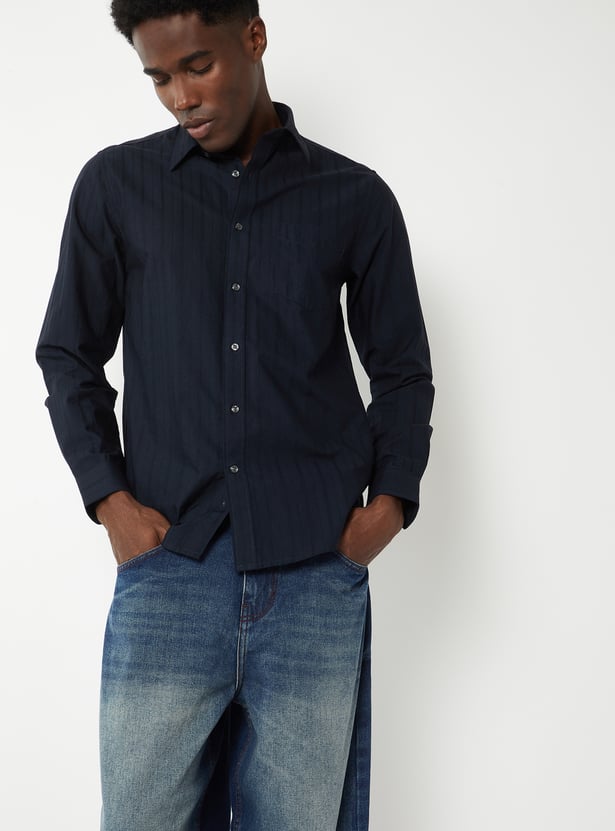 This striped shirt brings a timeless touch to your everyday style. It features a spread collar, button-down front, and cuffed full sleeves in a regular fit for all-day comfort and polish.