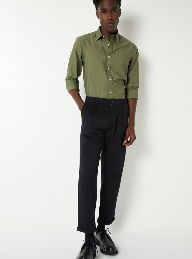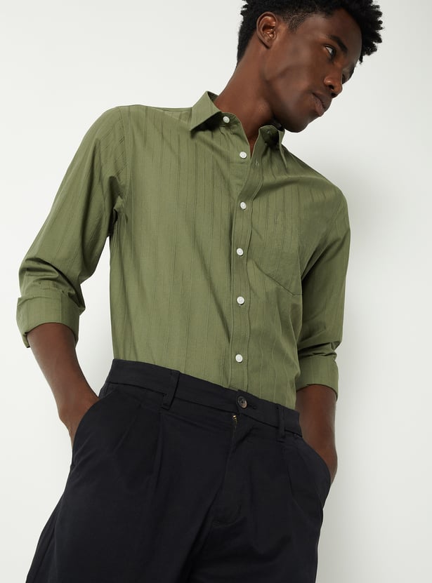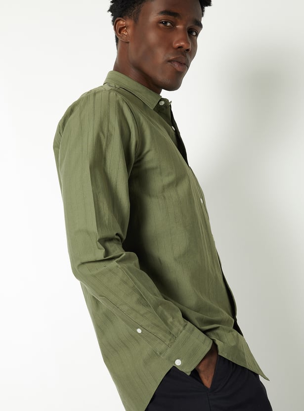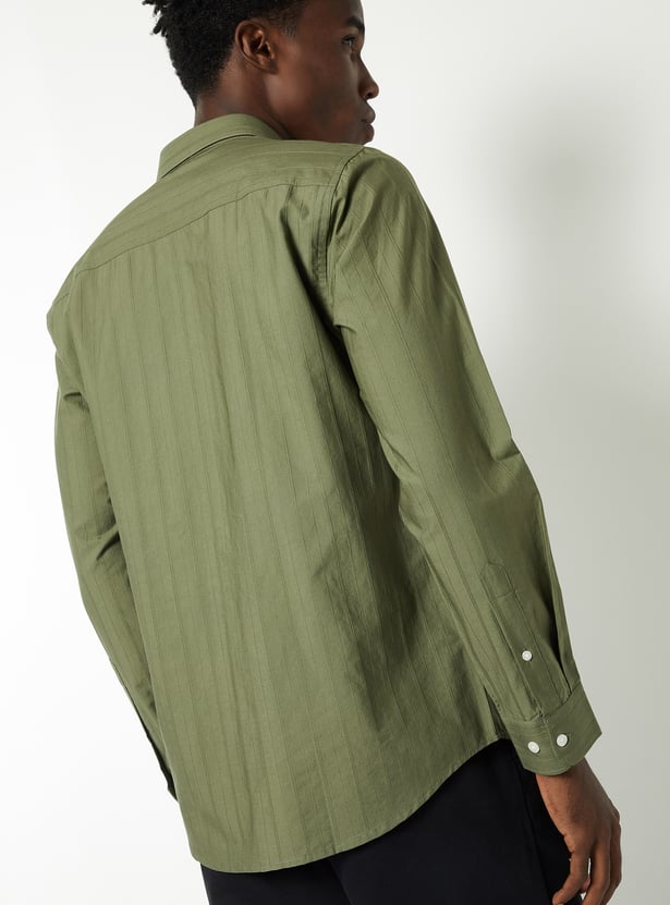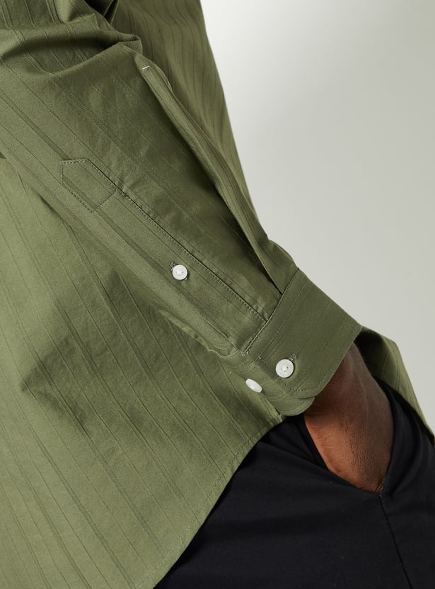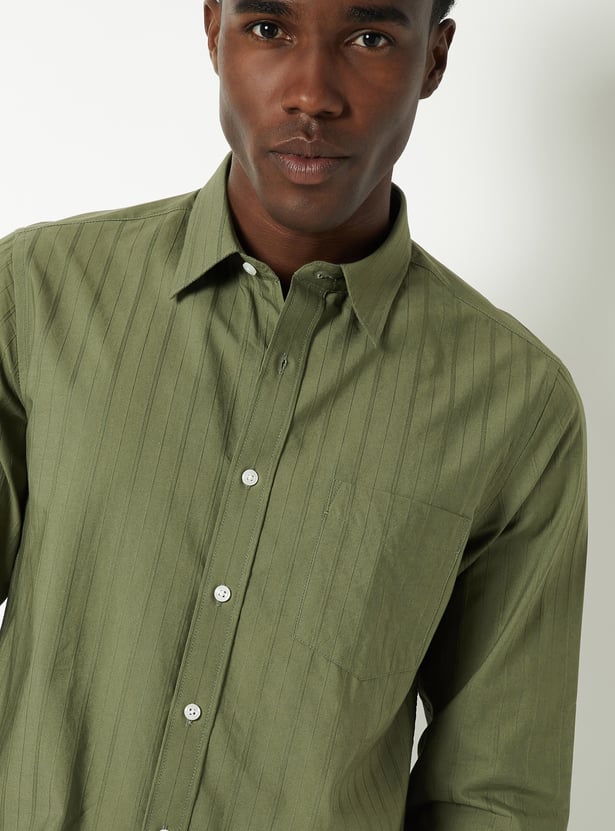 This striped shirt brings a timeless touch to your everyday style. It features a spread collar, button-down front, and cuffed full sleeves in a regular fit for all-day comfort and polish.